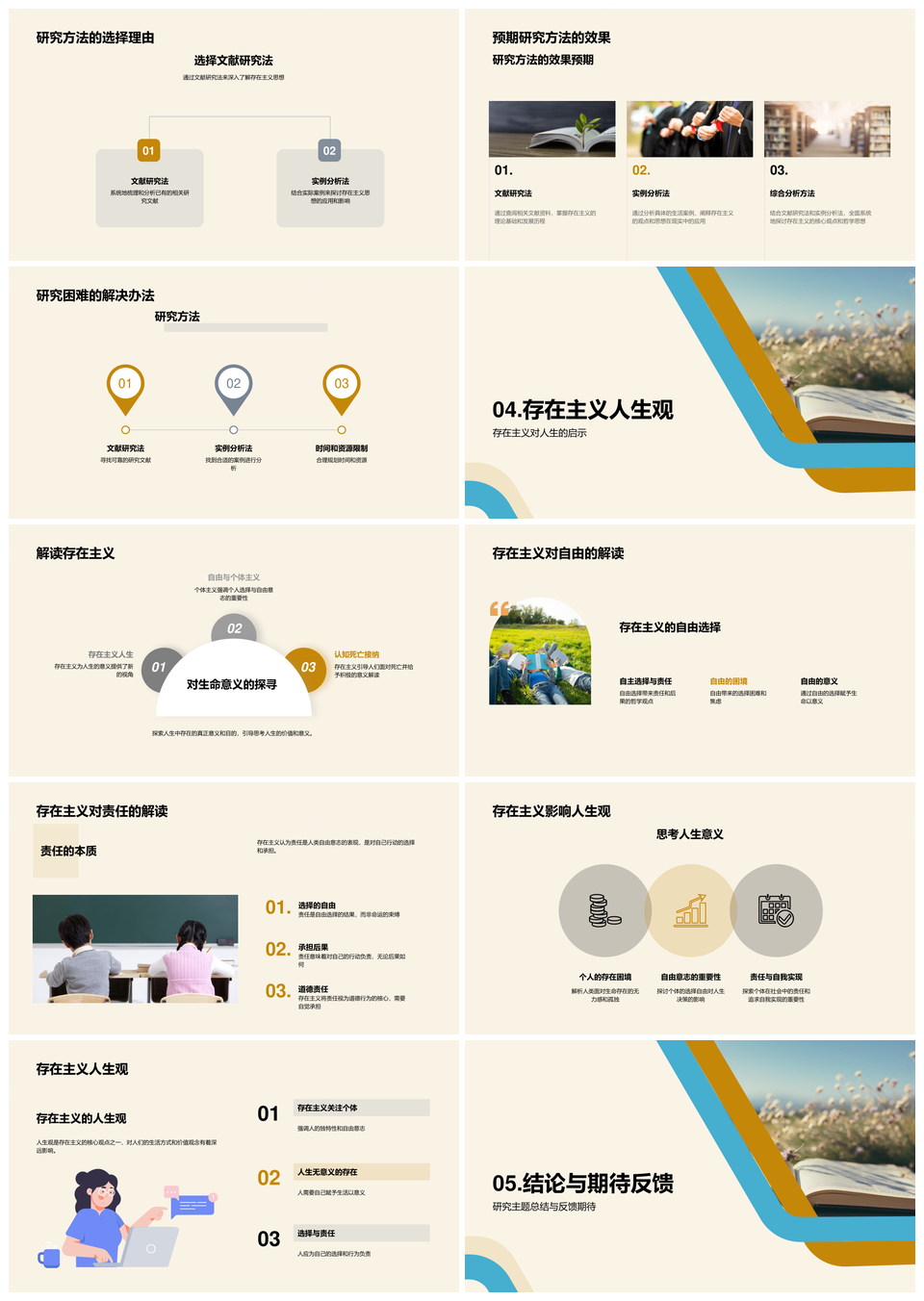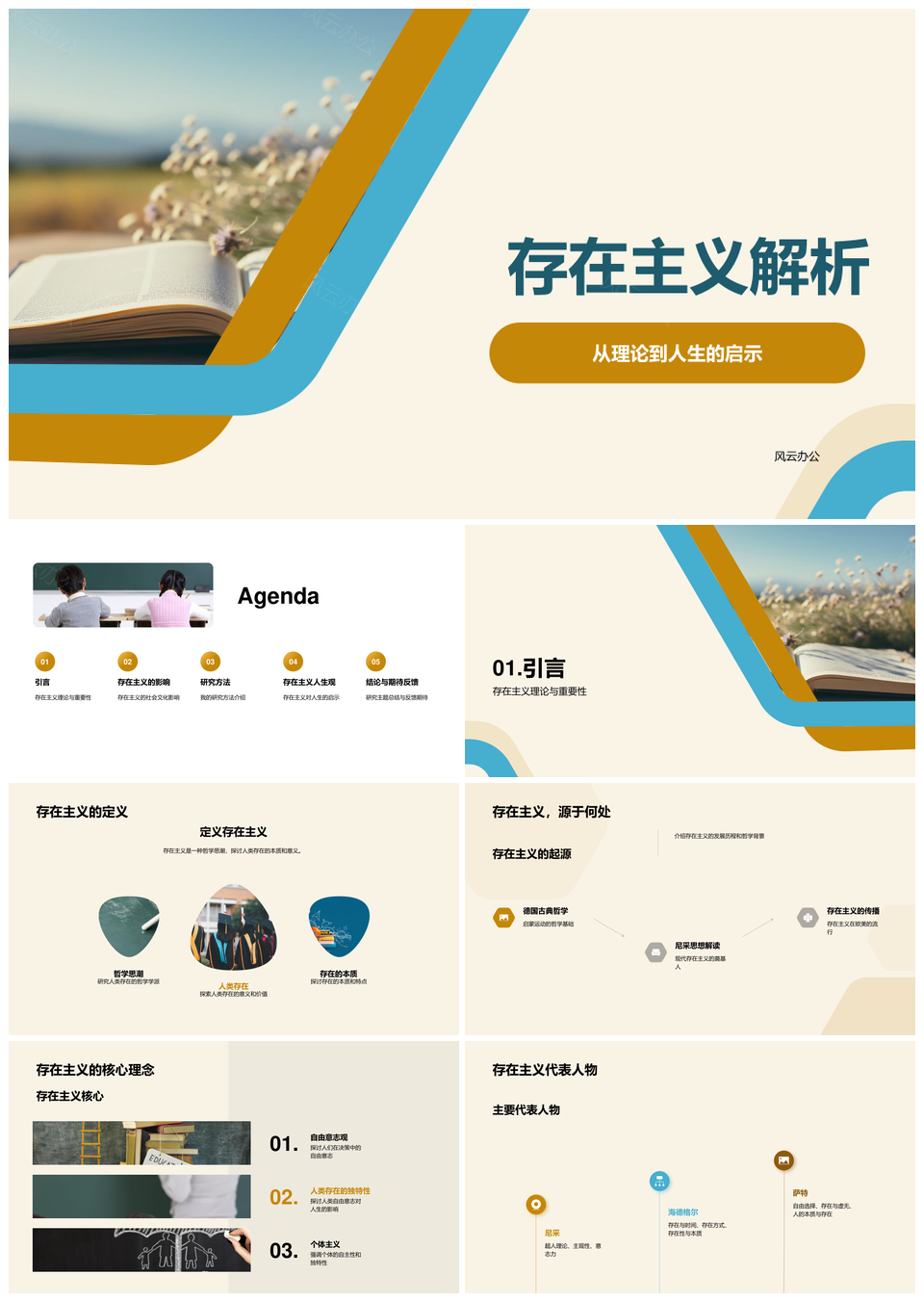 风云办公提供的存在主义理论人生启示与自由意志研究PPT模板,下载格式为pptx,一共33页,作品中文字及图均可以修改和编辑,图片更改请在作品中右键图片并更换,文字修改请直接点击文字进行修改。