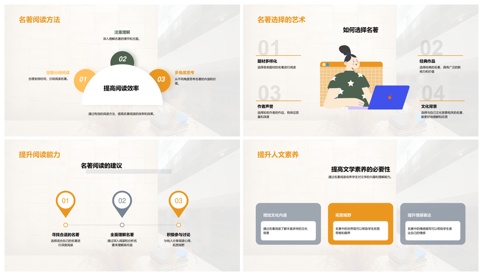 风云办公提供的经典文学多维解析文化魅力PPT模板,下载格式为pptx,一共32页,作品中文字及图均可以修改和编辑,图片更改请在作品中右键图片并更换,文字修改请直接点击文字进行修改。