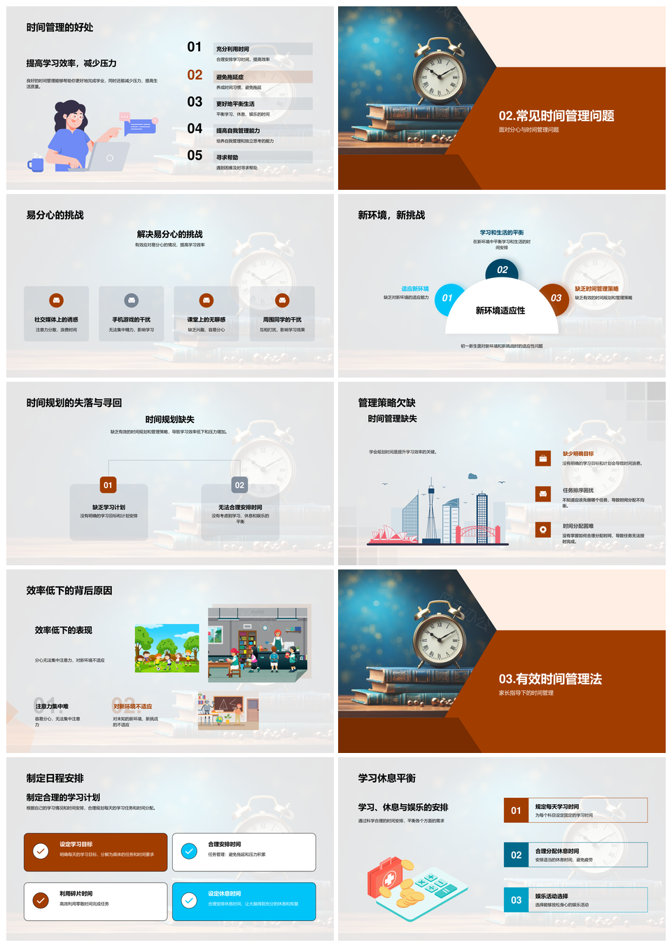 初一高效时间管理提效学习改善生活质量PPT模板推荐