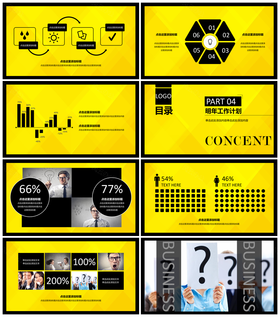 2025静态黄色年终工作总结汇报工作计划部门述职报告PPT模板
