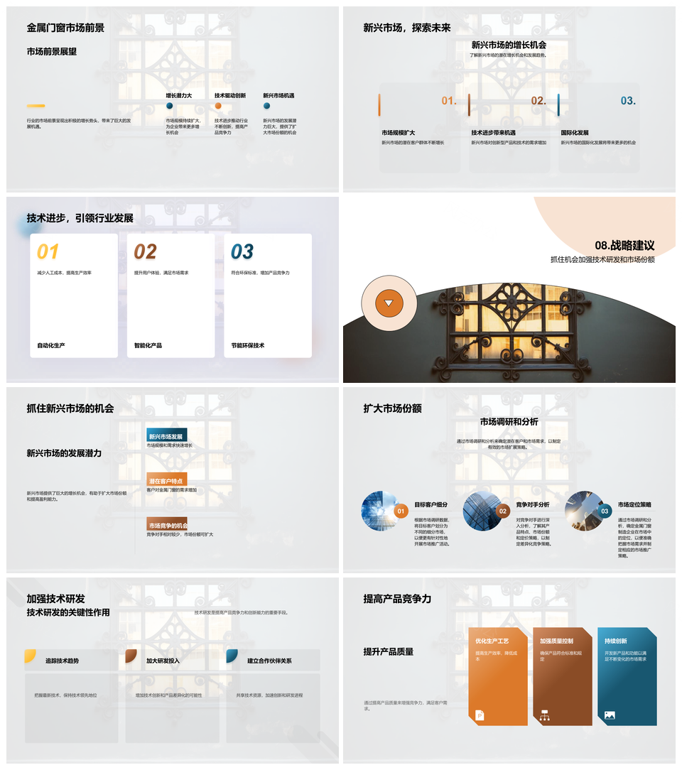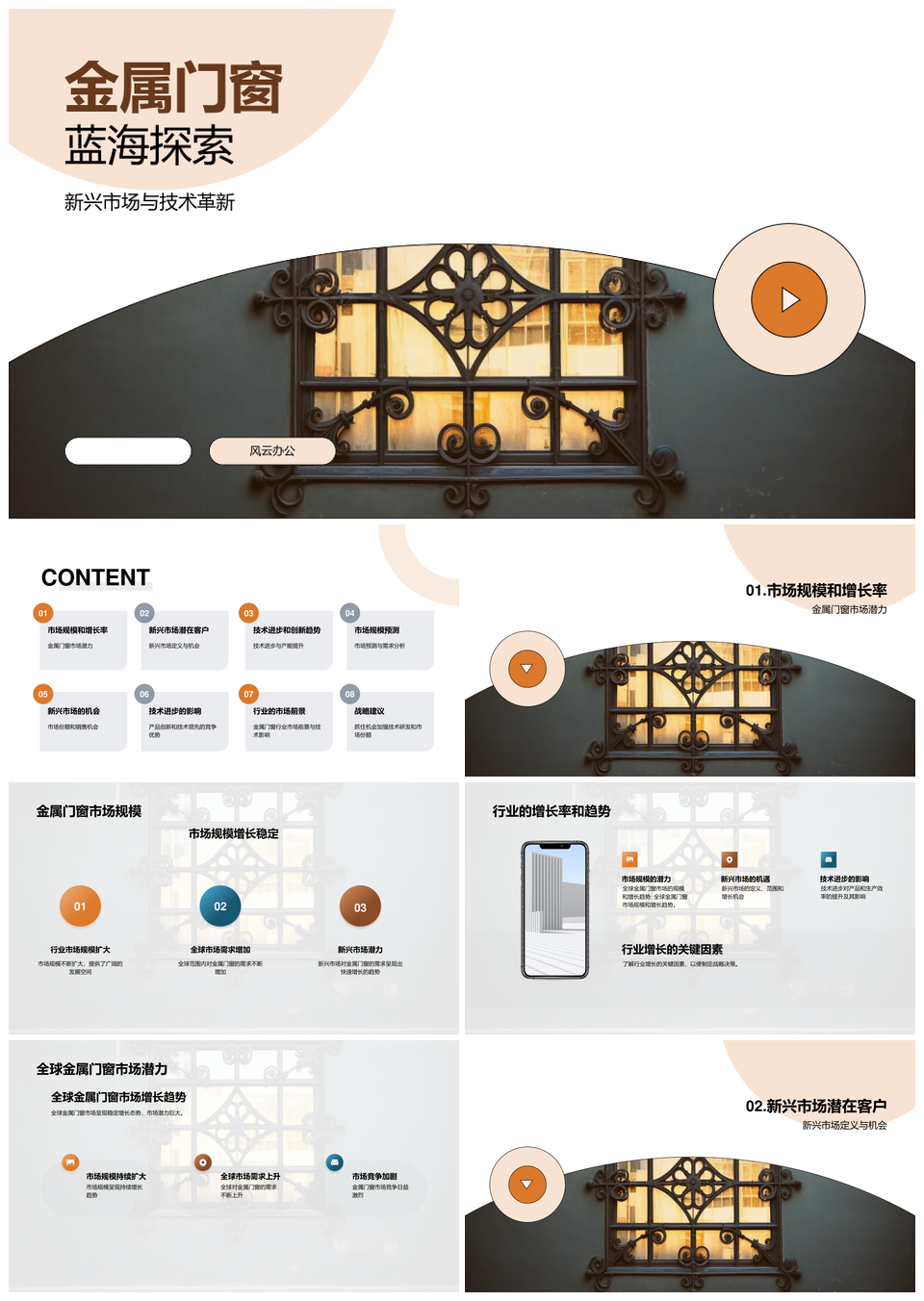 风云办公提供的全球金属门窗市场趋势与新兴增长分析PPT模板,下载格式为pptx,一共36页,作品中文字及图均可以修改和编辑,图片更改请在作品中右键图片并更换,文字修改请直接点击文字进行修改。