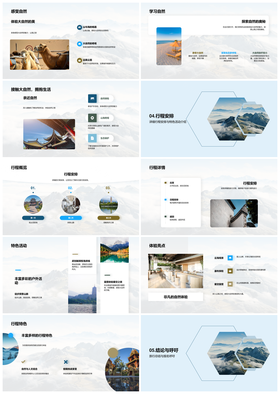 2025山海融合自然户外之旅策划行程PPT模板推荐