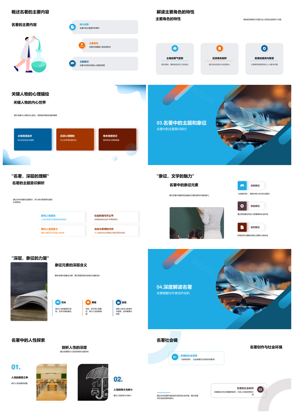 风云办公提供的名著故事内核与人性主题文学探索PPT模板,下载格式为pptx,一共23页,作品中文字及图均可以修改和编辑,图片更改请在作品中右键图片并更换,文字修改请直接点击文字进行修改。