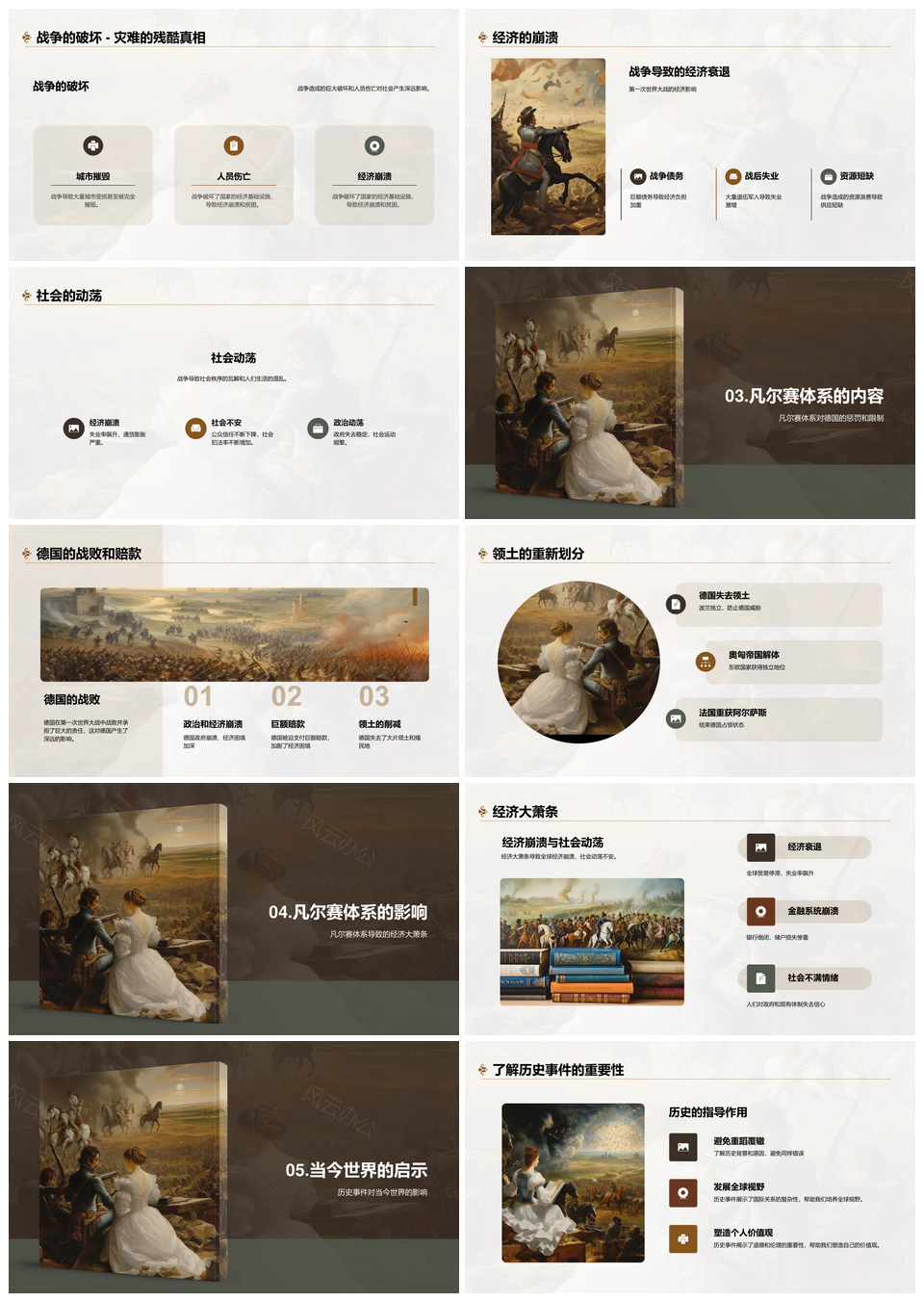 世界大战凡尔赛体系战争遗产背景原因影响启示PPT模板推荐