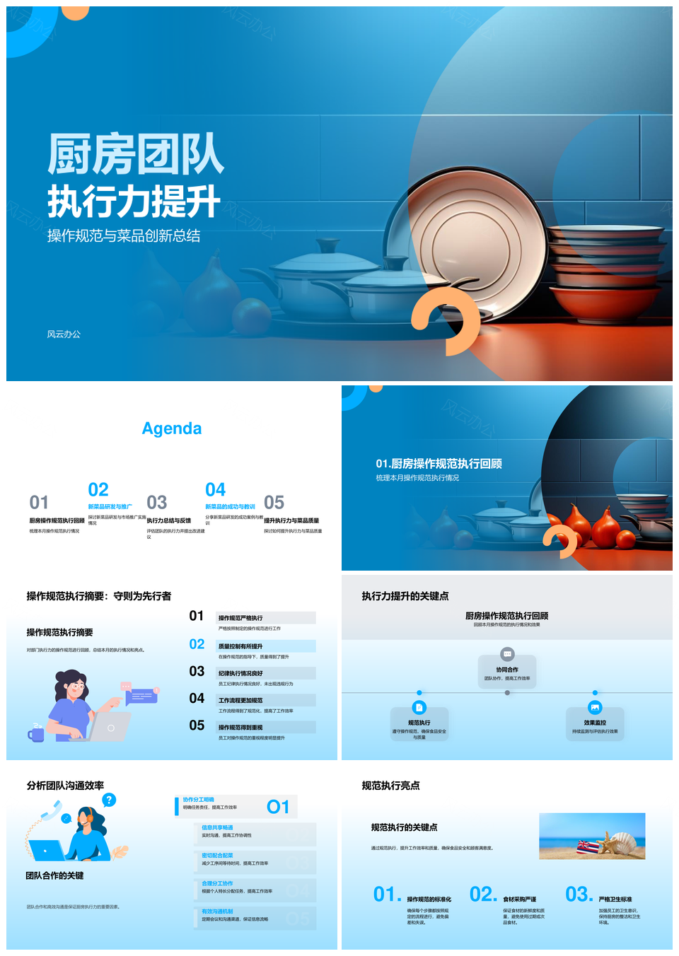 风云办公提供的厨房团队执行力规范创新合作质量提升PPT模板,下载格式为pptx,一共28页,作品中文字及图均可以修改和编辑,图片更改请在作品中右键图片并更换,文字修改请直接点击文字进行修改。