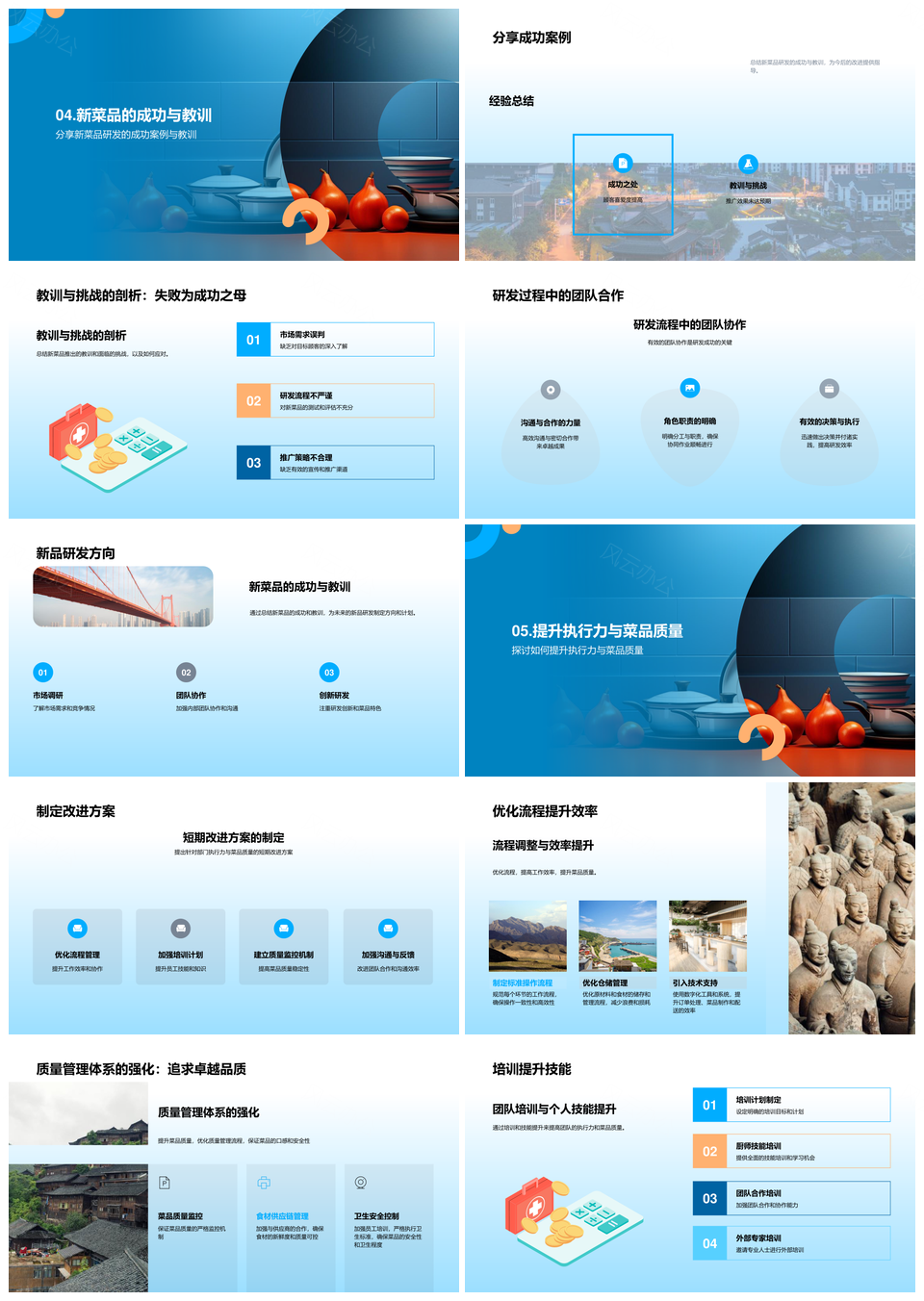 这是一张厨房团队执行力规范创新合作质量提升PPT模板,包含厨房团队、执行力、规范、创新、合作、质量提升等主题内容,也可用作厨房团队执行力规范、团队执行力规范创新、执行力规范创新合作、规范创新合作质量、创新合作质量提升、厨房团队执行力、团队执行力规范、执行力规范创新、规范创新合作、创新合作质量、合作质量提升、厨房团队、团队执行力、执行力规范、规范创新等PPT场景使用。