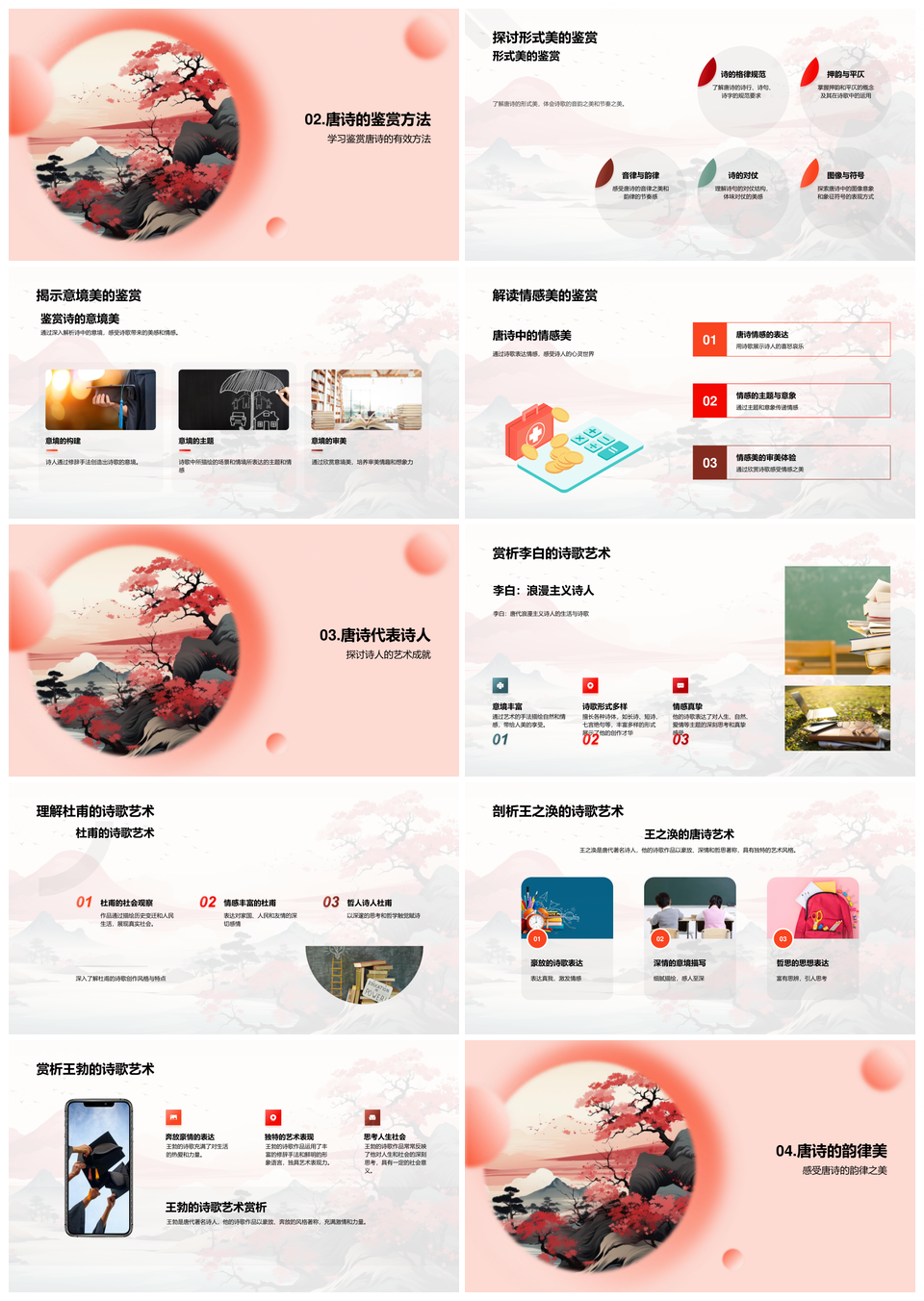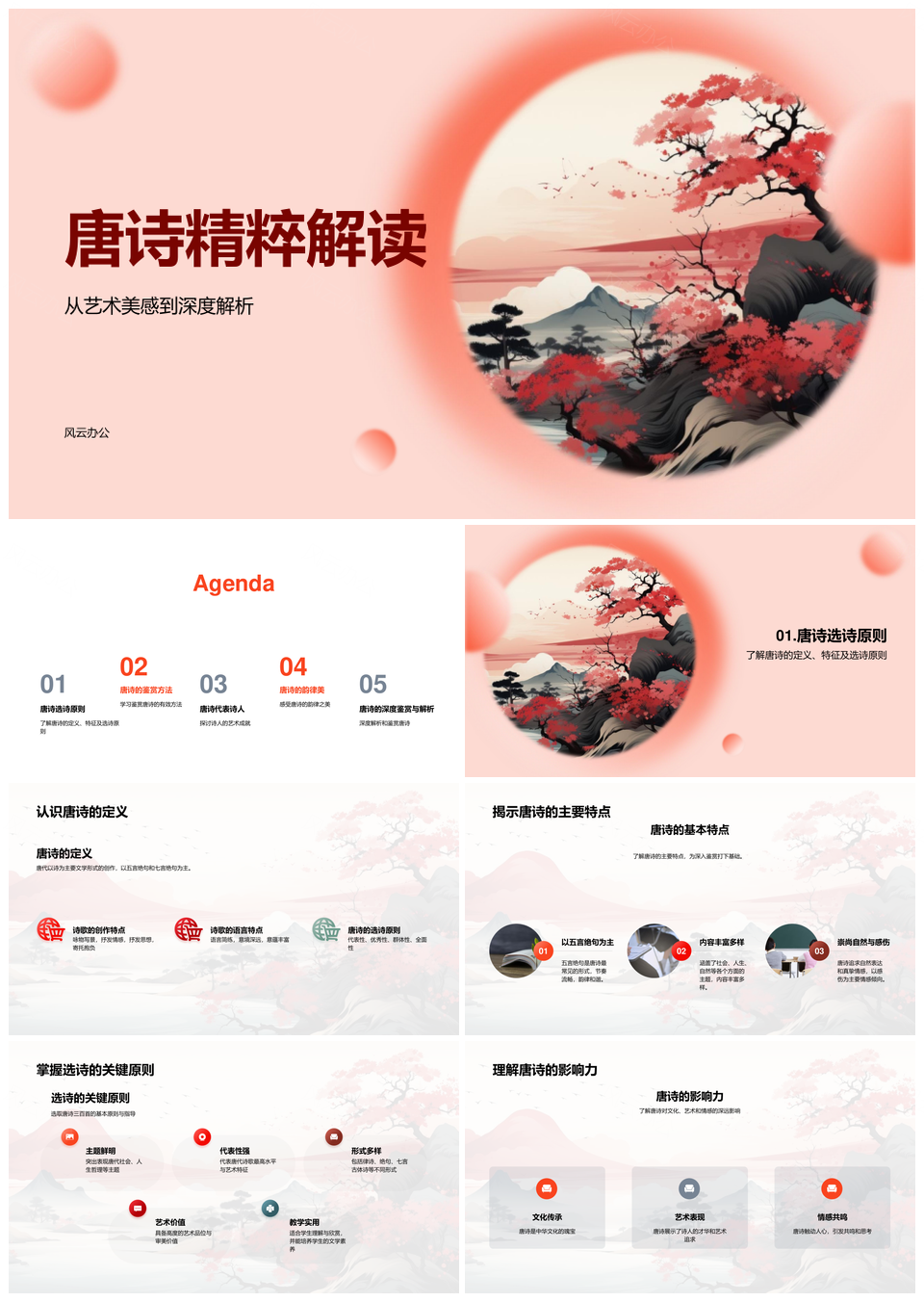 风云办公提供的唐诗精粹艺术深度解析三百首卷轴鉴赏PPT模板,下载格式为pptx,一共26页,作品中文字及图均可以修改和编辑,图片更改请在作品中右键图片并更换,文字修改请直接点击文字进行修改。