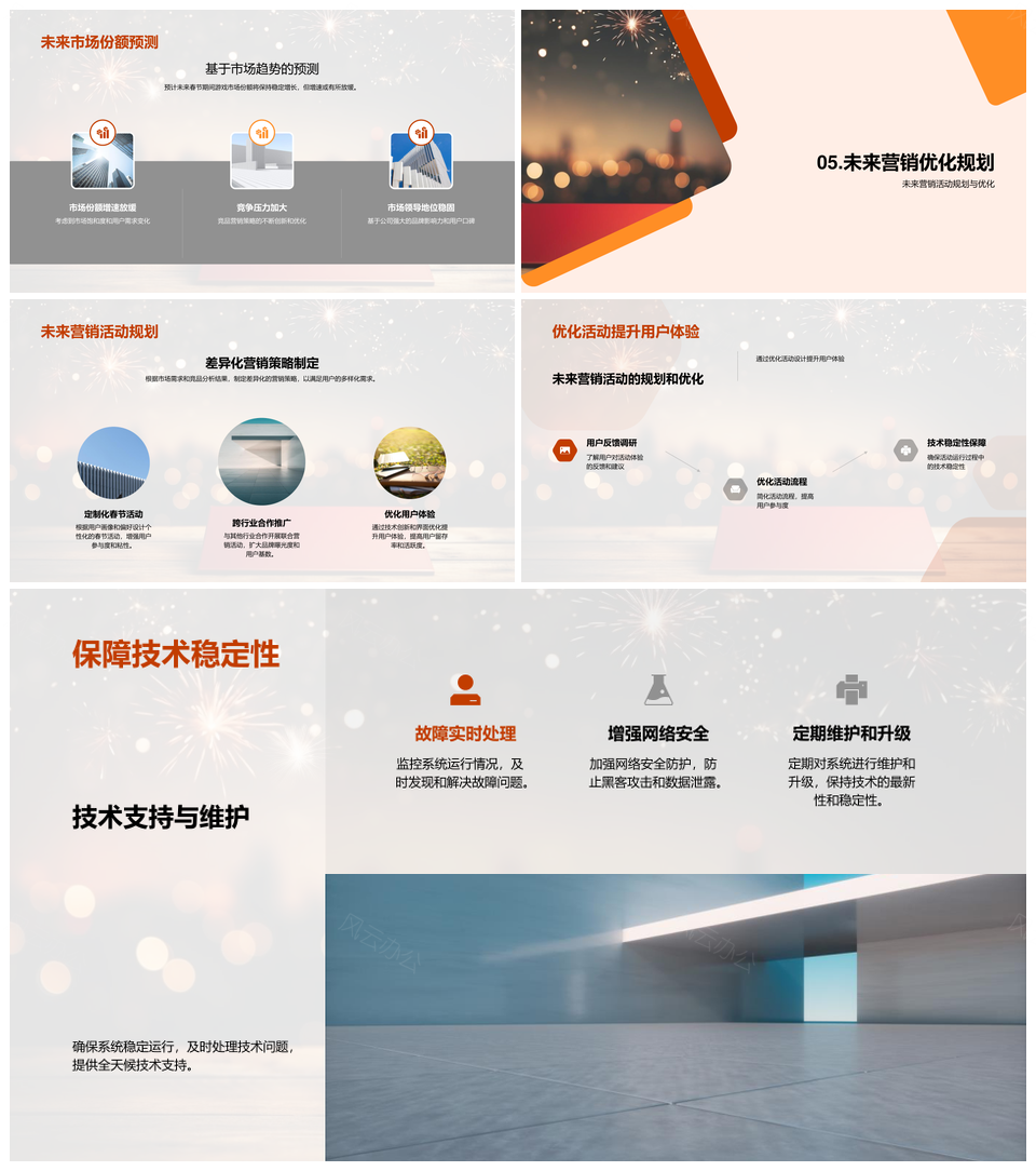 现代商务风格模板,以橙红为主色调,搭配城市夜景与烟花底图,传递高效与成果的视觉隐喻。版面采用模块化设计,支持物理问题拆解,逻辑框架可视化,核心步骤分栏布局,公式与数据突出展示。内嵌流程图、矩阵图等分析工具,适配技术汇报、方案决策等场景,通过克制配色与留白设计平衡信息密度。图表页含动态演示框架,复杂模型可拆分多步骤解析,满足学术研讨与商业路演的专业需求,关键结论通过红标提示强化记忆点。