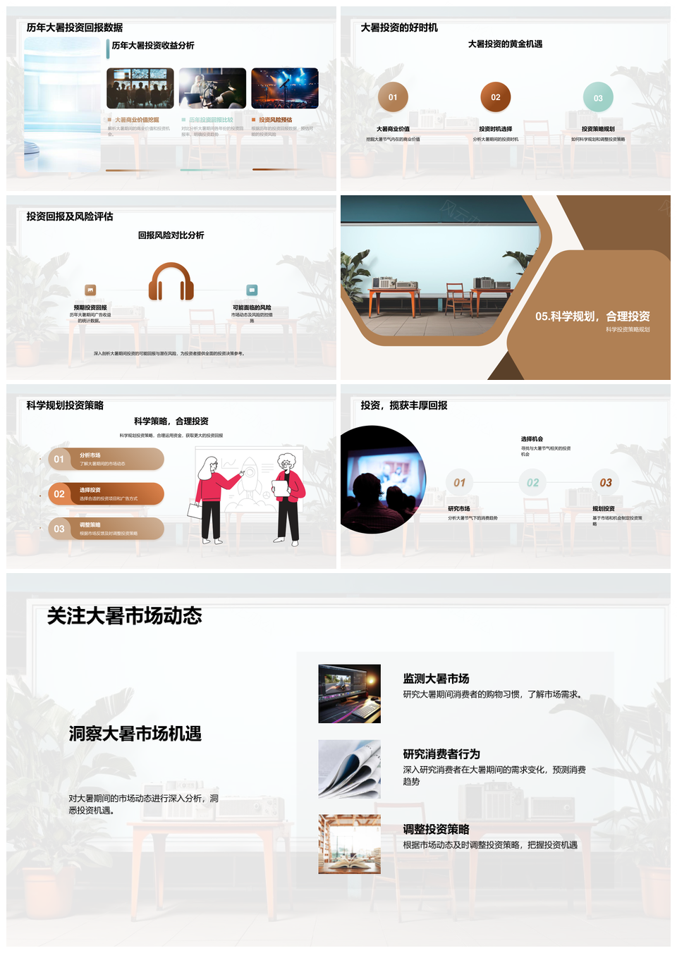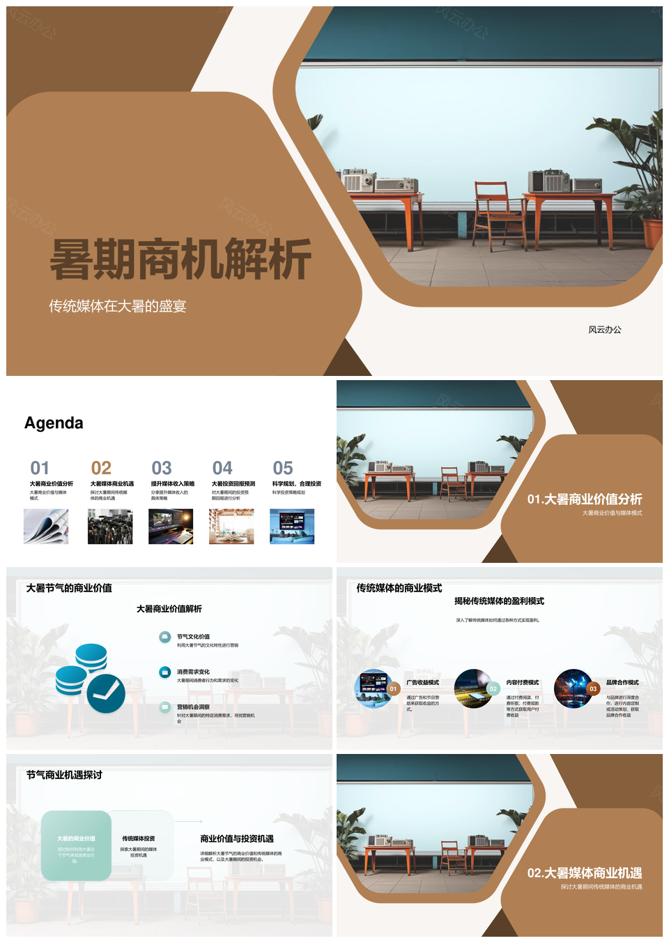 这是一张暑期商机传统媒体大暑投资防暑健康合作PPT模板,包含暑期、商机、传统媒体、大暑、投资、防暑、健康、合作等主题内容,也可用作暑期商机传统媒体合作、暑期商机传统媒体投资、传统媒体大暑防暑健康、大暑防暑健康投资合作、暑期商机健康合作、传统媒体防暑健康投资、大暑商机投资合作、暑期传统媒体防暑健康、防暑健康投资合作、大暑商机传统媒体、暑期防暑健康合作、传统媒体大暑投资、防暑健康合作、暑期商机投资、大暑健康合作等PPT场景使用。 风云办公提供的暑期商机传统媒体大暑投资防暑健康合作PPT模板,下载格式为pptx,一共25页,作品中文字及图均可以修改和编辑,图片更改请在作品中右键图片并更换,文字修改请直接点击文字进行修改。