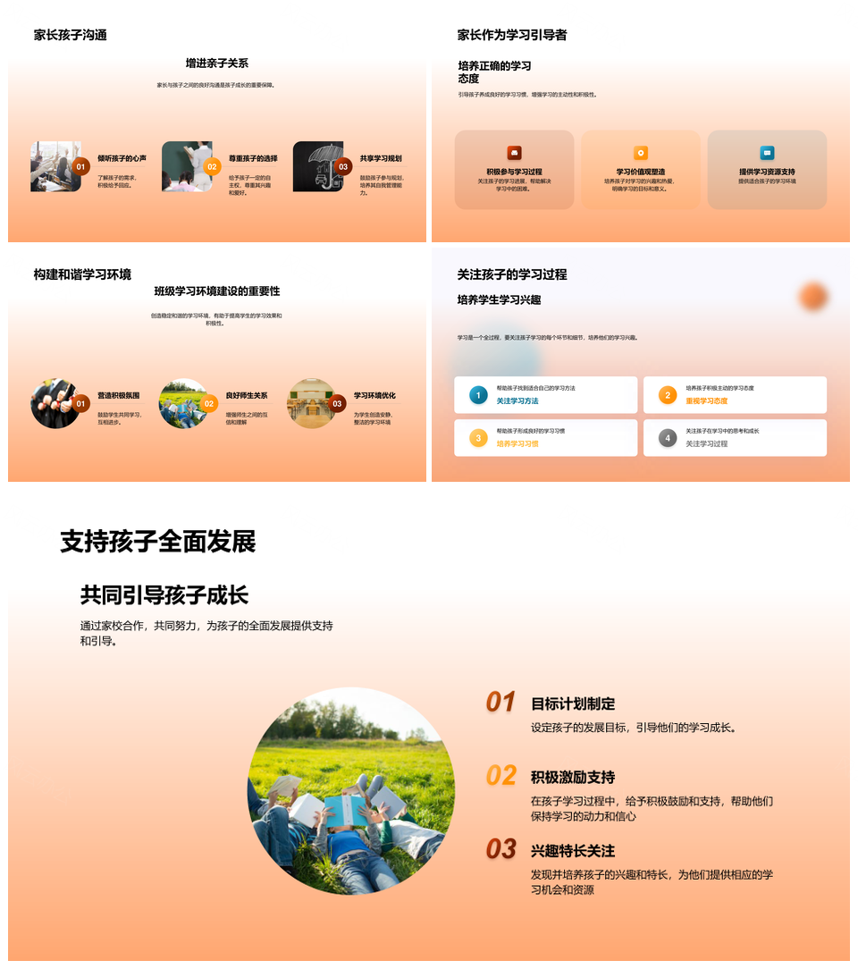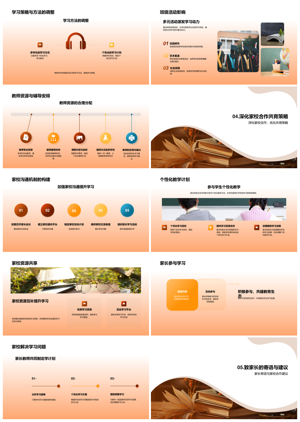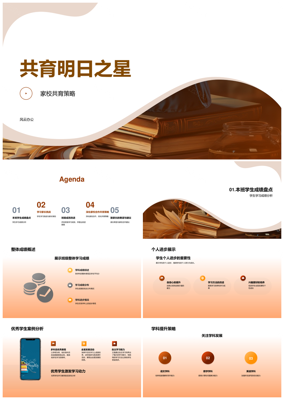 风云办公提供的家校共育策略学业规划破解学习难题PPT模板,下载格式为pptx,一共33页,作品中文字及图均可以修改和编辑,图片更改请在作品中右键图片并更换,文字修改请直接点击文字进行修改。