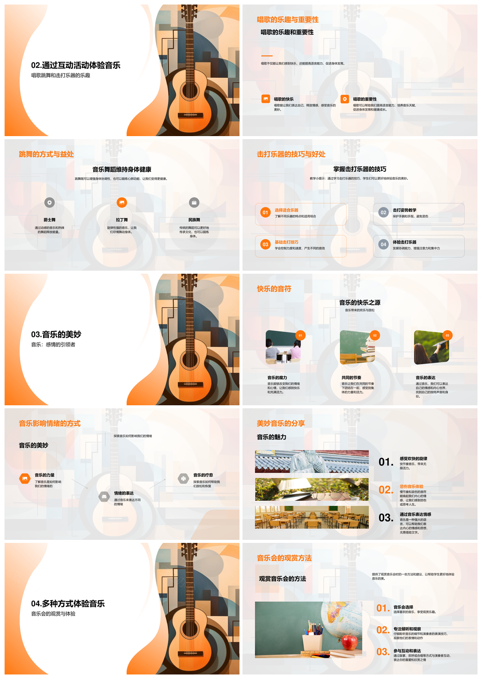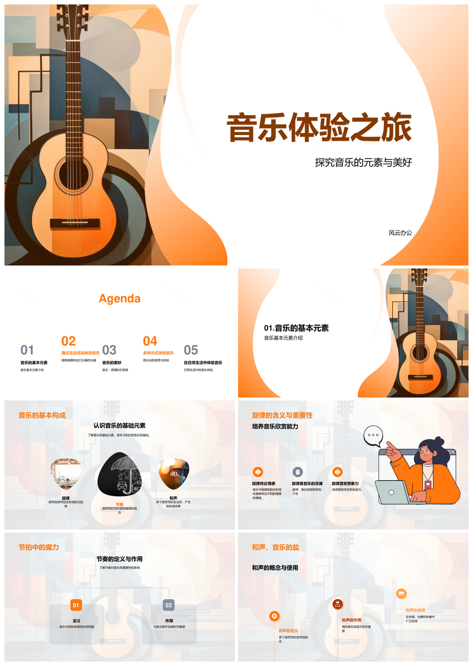 这是一张音乐体验之旅元素旋律节奏和声唱跳击奏符号PPT模板,包含音乐、体验之旅、元素、旋律、节奏、和声、唱跳、击奏、符号等主题内容,也可用作音乐旋律节奏和声、旋律节奏和声唱跳、节奏和声唱跳击奏、和声唱跳击奏符号、音乐体验之旅元素、体验之旅元素旋律、之旅元素旋律节奏、元素旋律节奏和声、旋律节奏和声击奏、节奏和声击奏符号、音乐元素旋律节奏、音乐节奏和声唱跳、元素和声唱跳击奏、旋律和声击奏符号、音乐之旅元素旋律等PPT场景使用。 风云办公提供的音乐体验之旅元素旋律节奏和声唱跳击奏符号PPT模板,下载格式为pptx,一共24页,作品中文字及图均可以修改和编辑,图片更改请在作品中右键图片并更换,文字修改请直接点击文字进行修改。