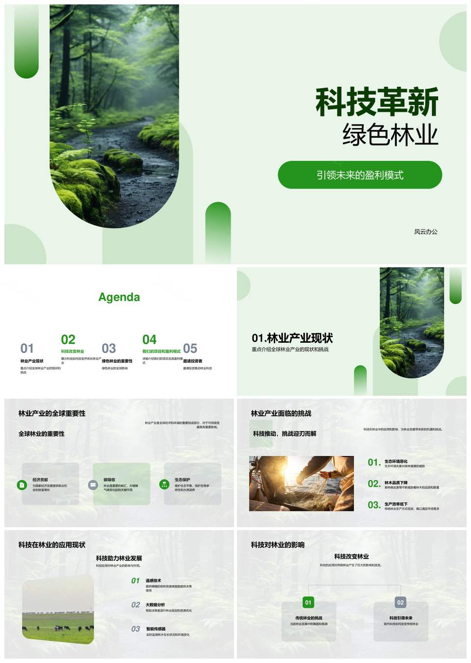 风云办公提供的科技革新智慧林业大数据绿色产业PPT模板,下载格式为pptx,一共28页,作品中文字及图均可以修改和编辑,图片更改请在作品中右键图片并更换,文字修改请直接点击文字进行修改。
