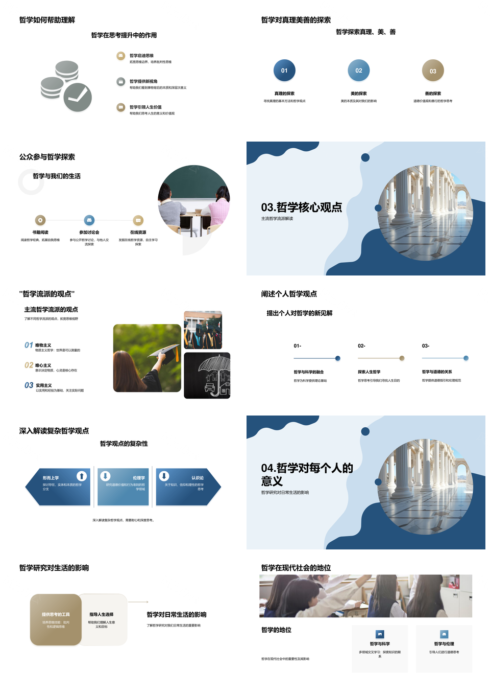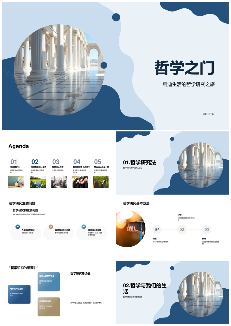 风云办公提供的哲学之门古希腊柱研究价值启思PPT模板,下载格式为pptx,一共23页,作品中文字及图均可以修改和编辑,图片更改请在作品中右键图片并更换,文字修改请直接点击文字进行修改。