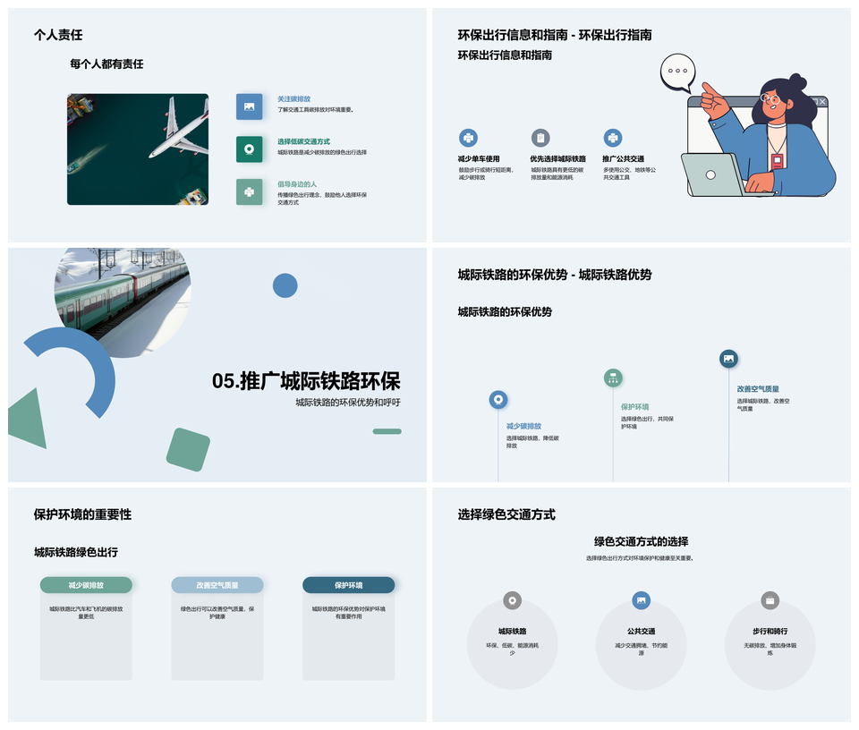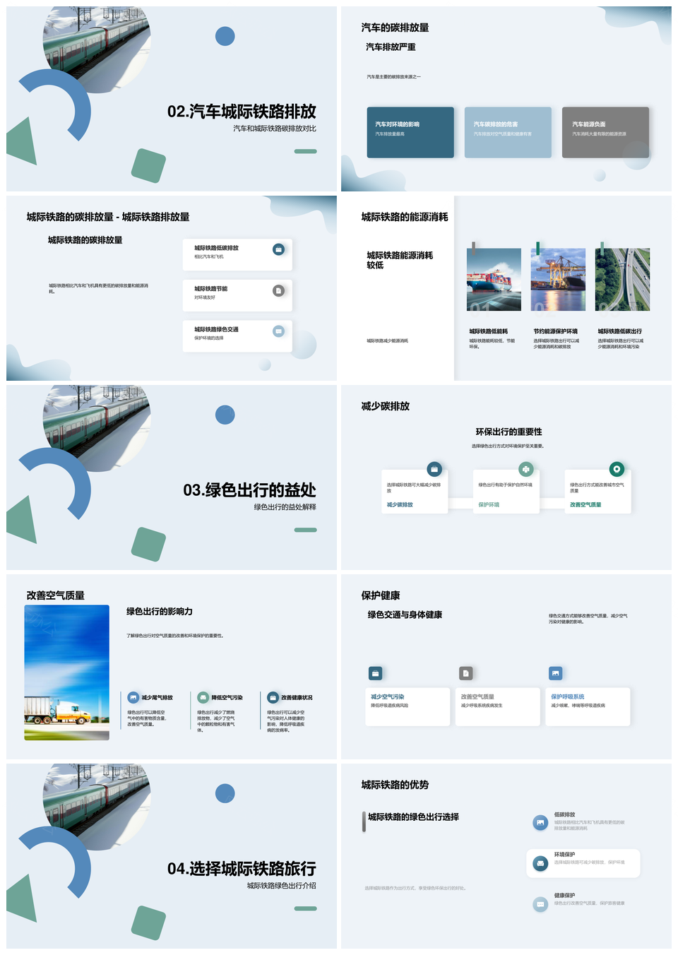 这是一张城际铁路绿色出行环保优势专家倡导低碳PPT模板,包含城际铁路、绿色出行、环保优势、专家、倡导、低碳等主题内容,也可用作城际铁路绿色出行环保优势、绿色出行环保优势专家、环保优势专家倡导低碳、城际铁路绿色出行环保、绿色出行环保优势、环保优势专家倡导、优势专家倡导低碳、城际铁路绿色出行、绿色出行环保、环保优势专家、优势专家倡导、专家倡导低碳、环保优势、优势专家、倡导低碳等PPT场景使用。 风云办公提供的城际铁路绿色出行环保优势专家倡导低碳PPT模板,下载格式为pptx,一共24页,作品中文字及图均可以修改和编辑,图片更改请在作品中右键图片并更换,文字修改请直接点击文字进行修改。