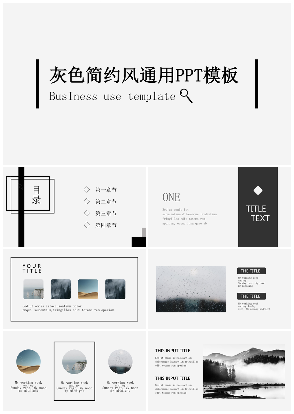 灰色创意简约风商务工作通用公司介绍PPT模板