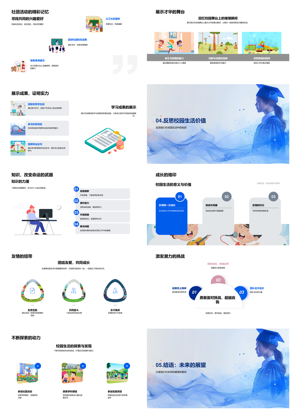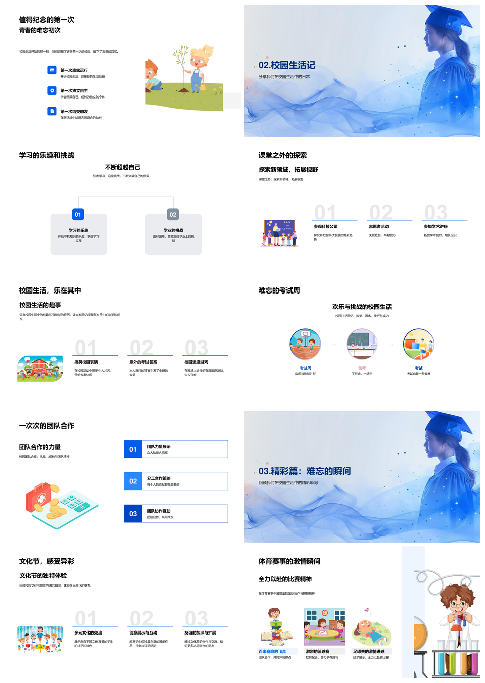 风云办公提供的毕业记忆相册重温校园个人经历PPT模板,下载格式为pptx,一共33页,作品中文字及图均可以修改和编辑,图片更改请在作品中右键图片并更换,文字修改请直接点击文字进行修改。