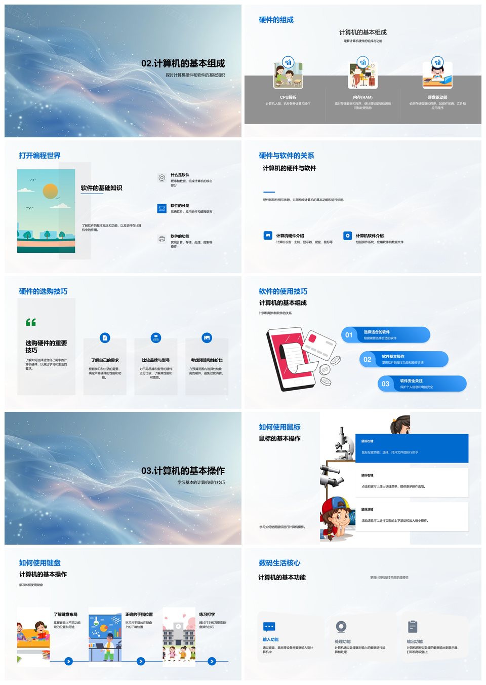 2025小学计算机基础硬件软件知识起源功能教学PPT模板推荐
