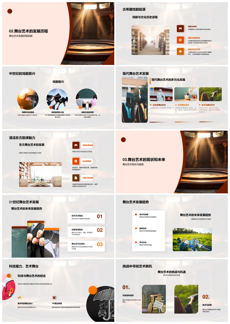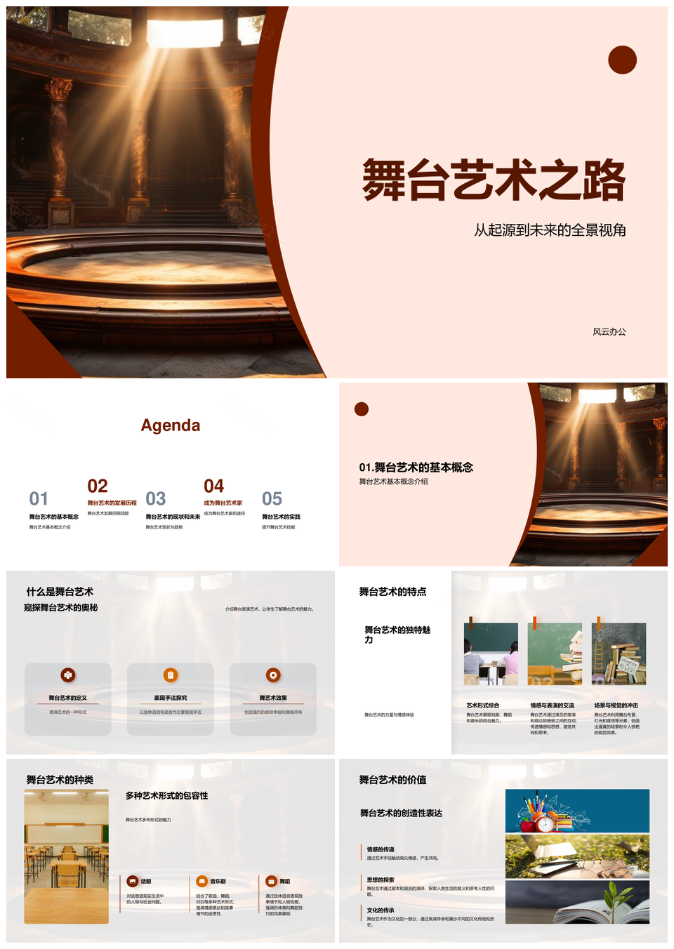 风云办公提供的古希腊至现代舞台艺术发展训练之路PPT模板,下载格式为pptx,一共28页,作品中文字及图均可以修改和编辑,图片更改请在作品中右键图片并更换,文字修改请直接点击文字进行修改。