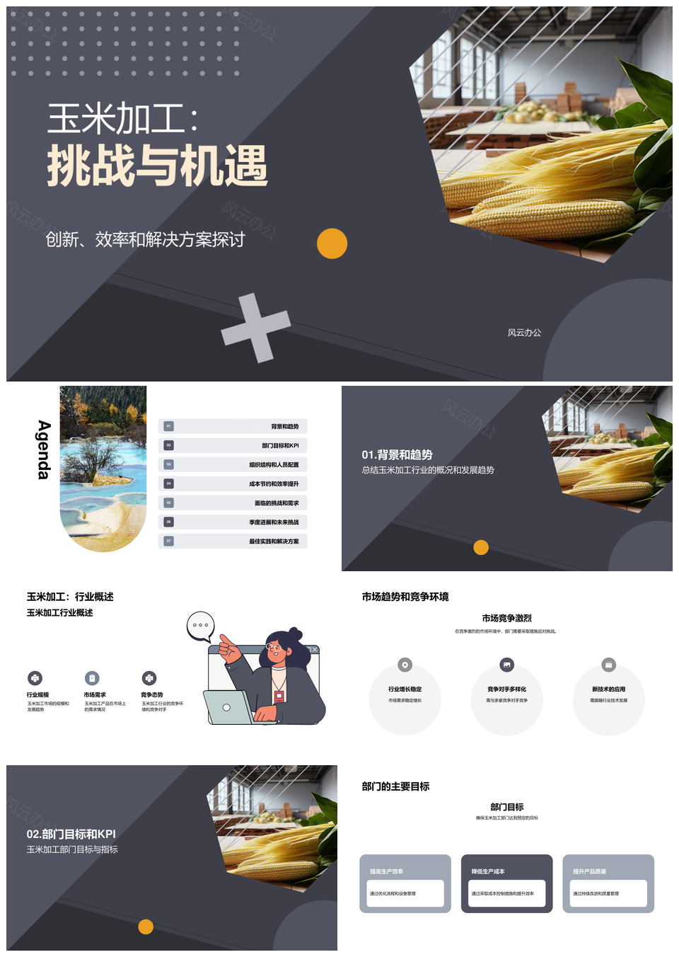 玉米加工部门经理总结业绩市场趋势竞争目标PPT模板推荐