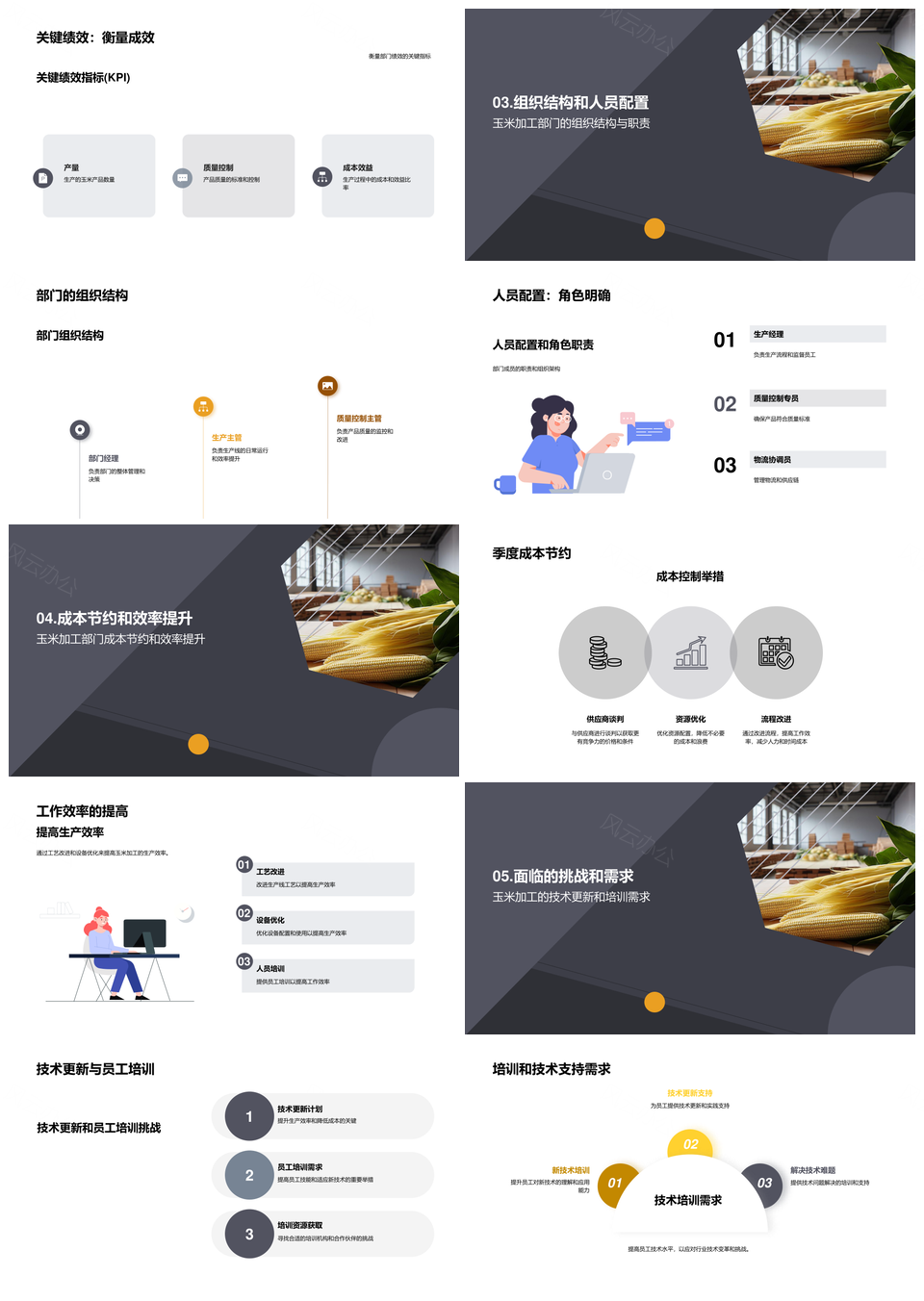 这是一张玉米加工部门经理总结业绩市场趋势竞争目标PPT模板,包含玉米、加工、部门、经理、总结、业绩、市场、趋势、竞争、目标等主题内容,也可用作玉米加工部门经理、加工部门经理总结、部门经理总结业绩、经理总结业绩市场、总结业绩市场趋势、业绩市场趋势竞争、市场趋势竞争目标、玉米加工部门、加工部门经理、部门经理总结、经理总结业绩、总结业绩市场、业绩市场趋势、市场趋势竞争、趋势竞争目标等PPT场景使用。 风云办公提供的玉米加工部门经理总结业绩市场趋势竞争目标PPT模板,下载格式为pptx,一共26页,作品中文字及图均可以修改和编辑,图片更改请在作品中右键图片并更换,文字修改请直接点击文字进行修改。