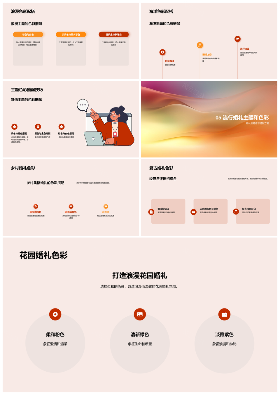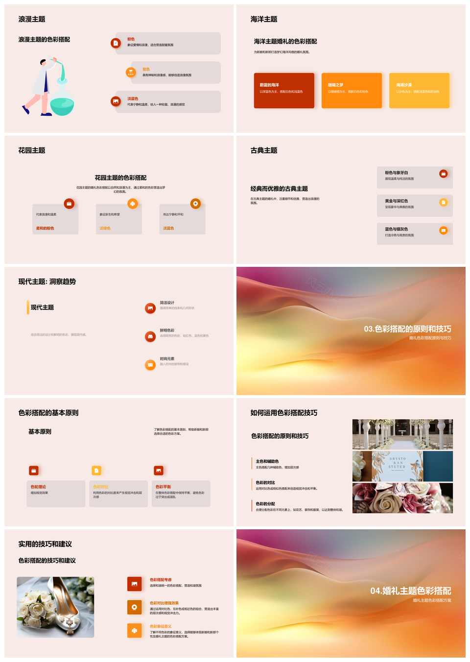 婚礼主题色彩渐变抽象背景氛围风格搭配PPT模板推荐
