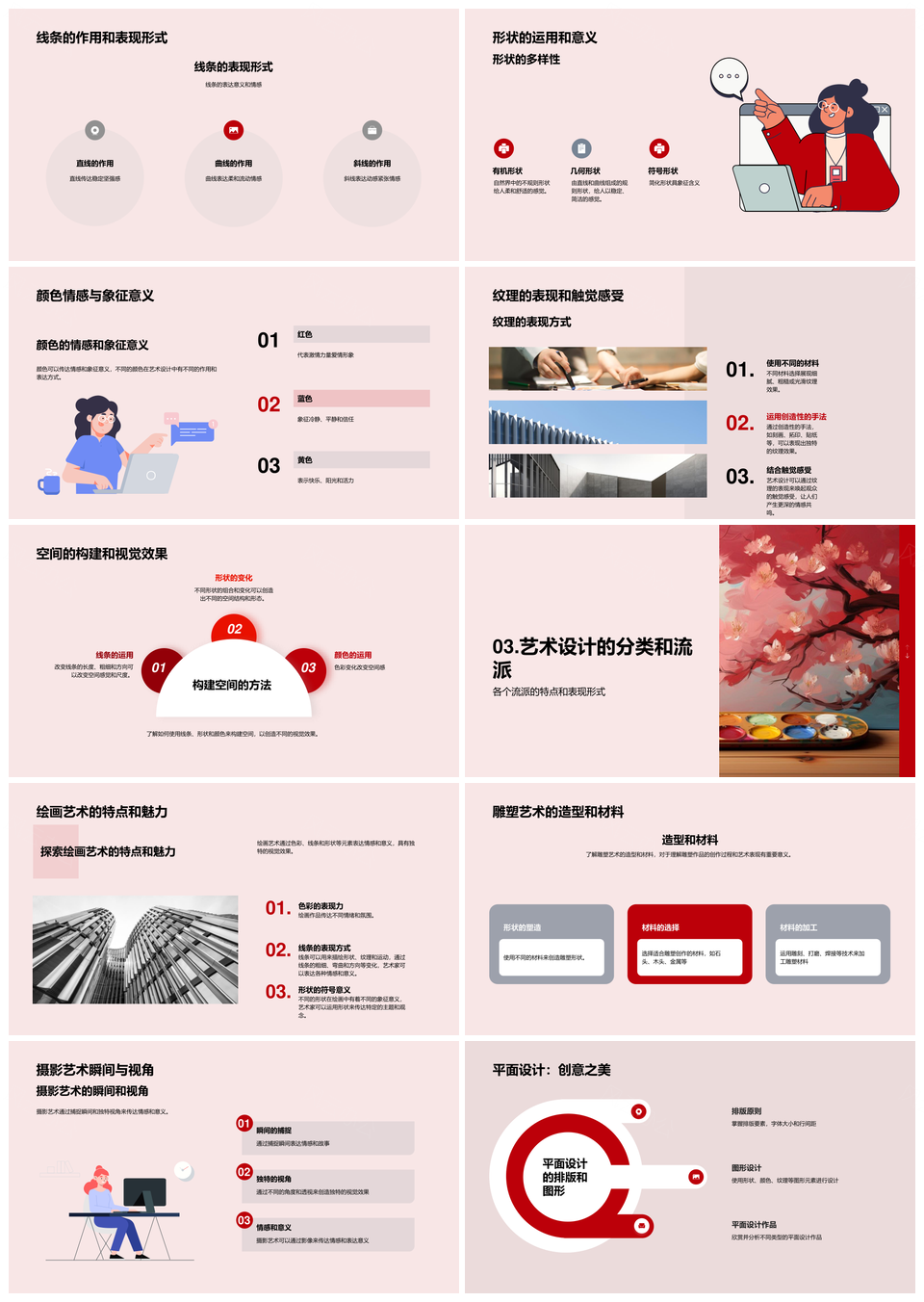 这是一张艺术设计基础课程线条形状色彩创意表达PPT模板,包含艺术设计、基础课程、线条、形状、色彩、创意、表达等主题内容,也可用作艺术设计基础课程、设计基础课程线条、基础课程线条形状、课程线条形状色彩、线条形状色彩创意、形状色彩创意表达、艺术设计基础、设计基础课程、基础课程线条、课程线条形状、线条形状色彩、形状色彩创意、色彩创意表达、艺术设计、创意表达等PPT场景使用。 风云办公提供的艺术设计基础课程线条形状色彩创意表达PPT模板,下载格式为pptx,一共32页,作品中文字及图均可以修改和编辑,图片更改请在作品中右键图片并更换,文字修改请直接点击文字进行修改。