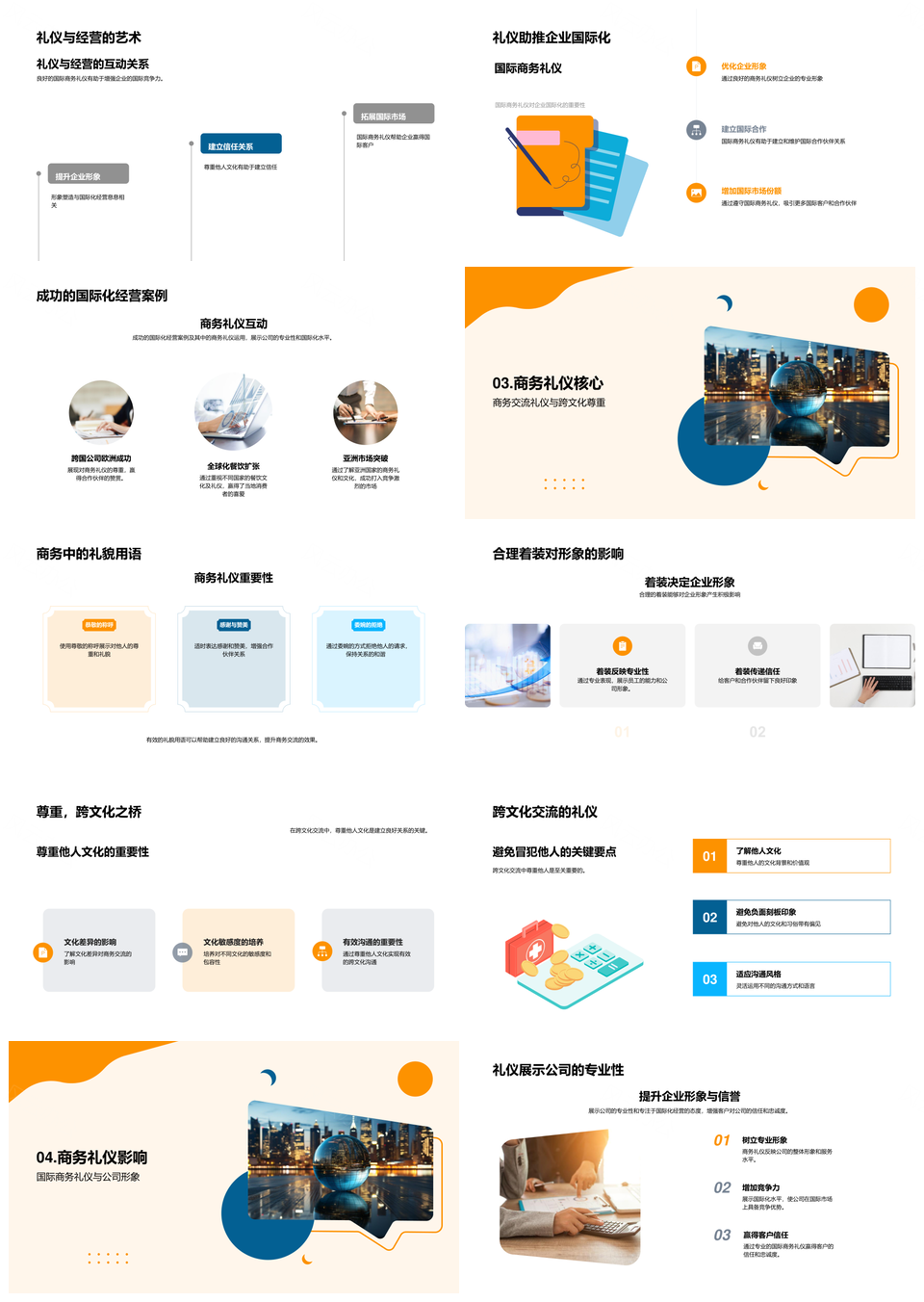 风云办公提供的国际商务礼仪培训提升企业全球竞争力PPT模板,下载格式为pptx,一共24页,作品中文字及图均可以修改和编辑,图片更改请在作品中右键图片并更换,文字修改请直接点击文字进行修改。