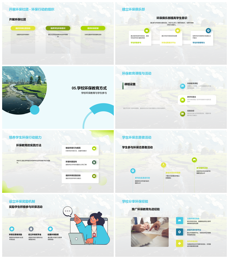 2025共襄绿色生态践行环保教育护植校园清洁PPT模板