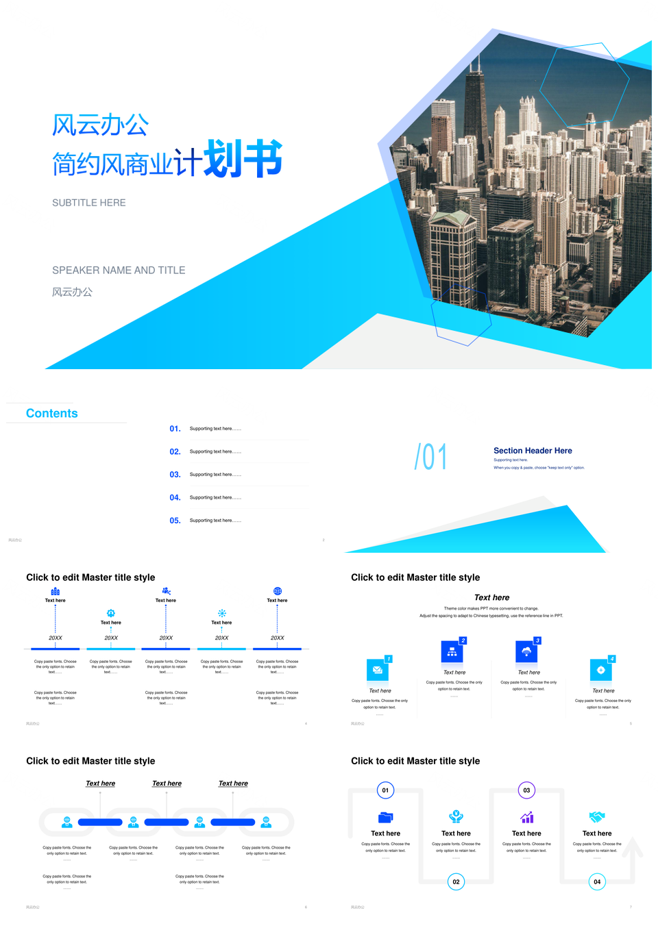 风云办公提供的蓝色几何简约城市商务地产计划报告PPT模板,下载格式为pptx,一共31页,作品中文字及图均可以修改和编辑,图片更改请在作品中右键图片并更换,文字修改请直接点击文字进行修改。