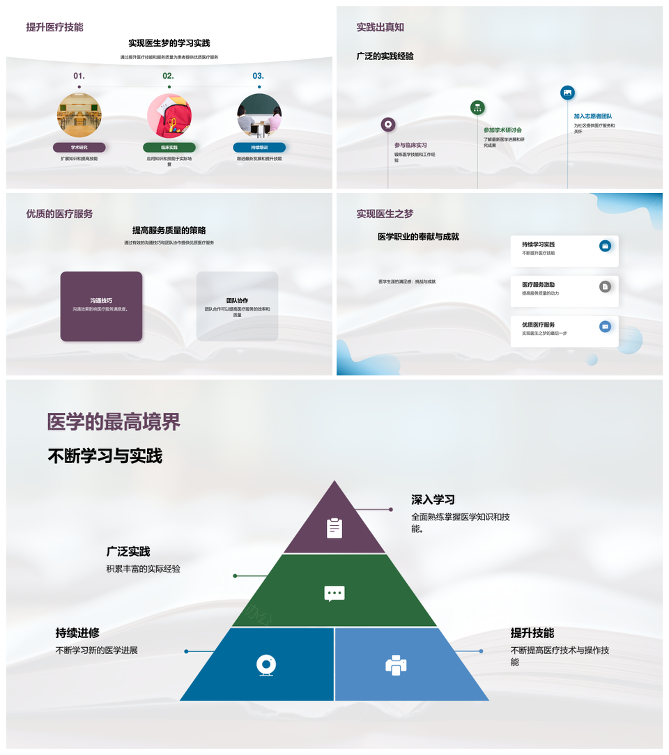 这是一张医生职责技能服务挑战学习实践压力PPT模板,包含医生、职责、技能、服务、挑战、学习、实践、压力等主题内容,也可用作医生职责技能服务挑战学习实践、挑战学习实践压力、医生职责技能服务、技能服务挑战学习、职责技能服务挑战、服务挑战学习实践、挑战学习实践压力、医生职责技能、职责技能服务、技能服务挑战、服务挑战学习、挑战学习实践、学习实践压力、医生职责、技能服务、服务挑战、挑战学习、学习实践、实践压力等PPT场景使用。