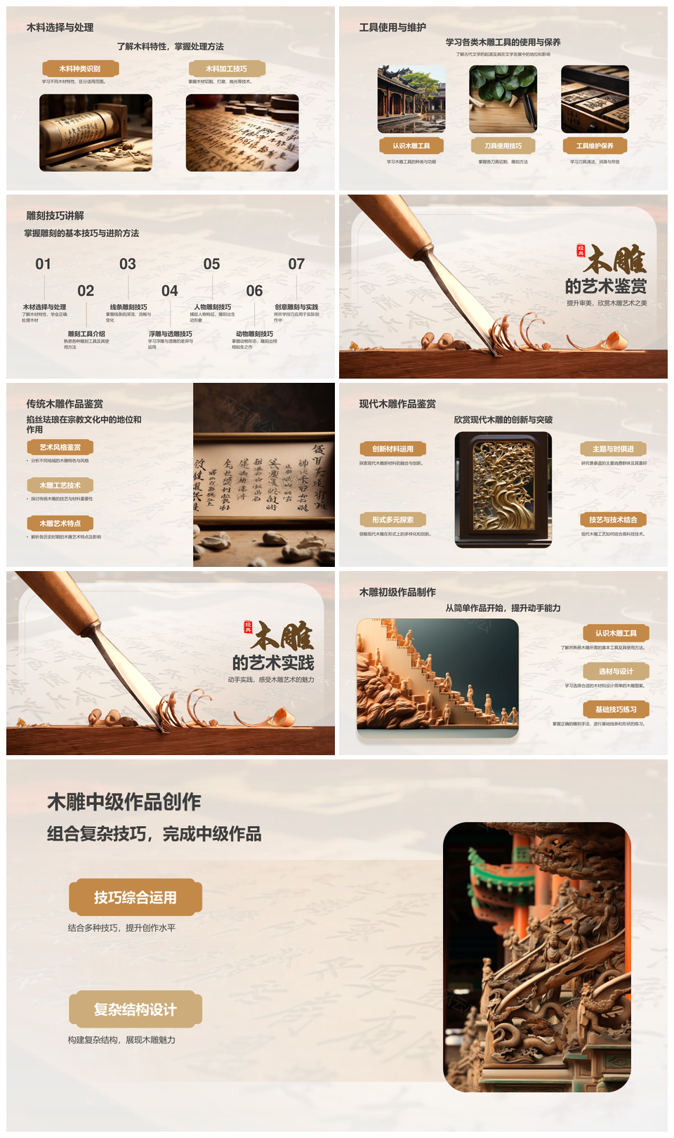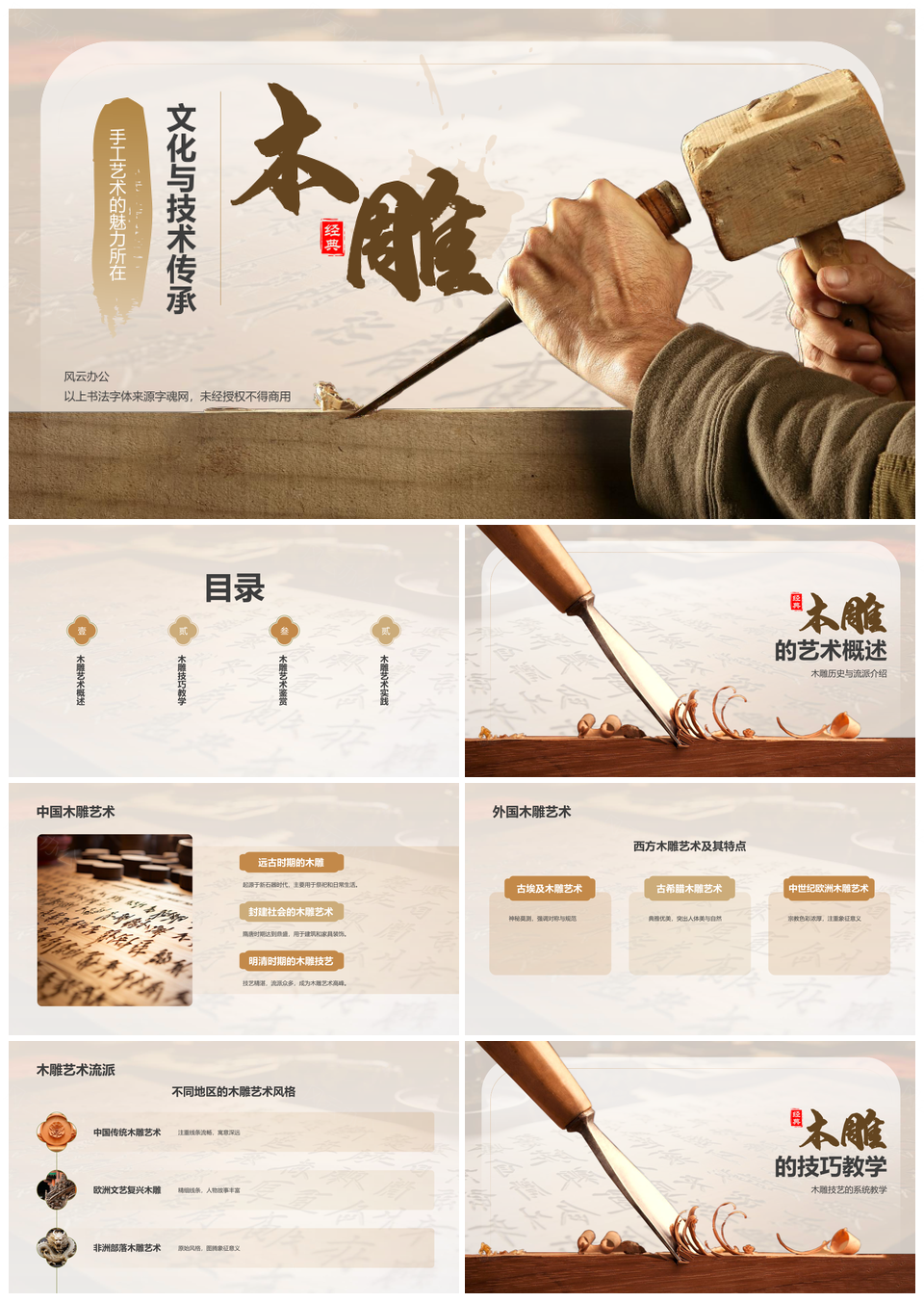 传统木雕手工技艺实践传承教育PPT模板推荐