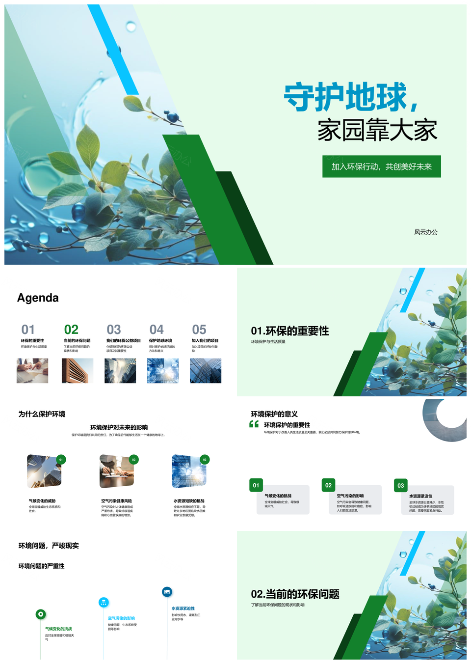 风云办公提供的环保公益护地球改善气候空气水质生活PPT模板,下载格式为pptx,一共23页,作品中文字及图均可以修改和编辑,图片更改请在作品中右键图片并更换,文字修改请直接点击文字进行修改。