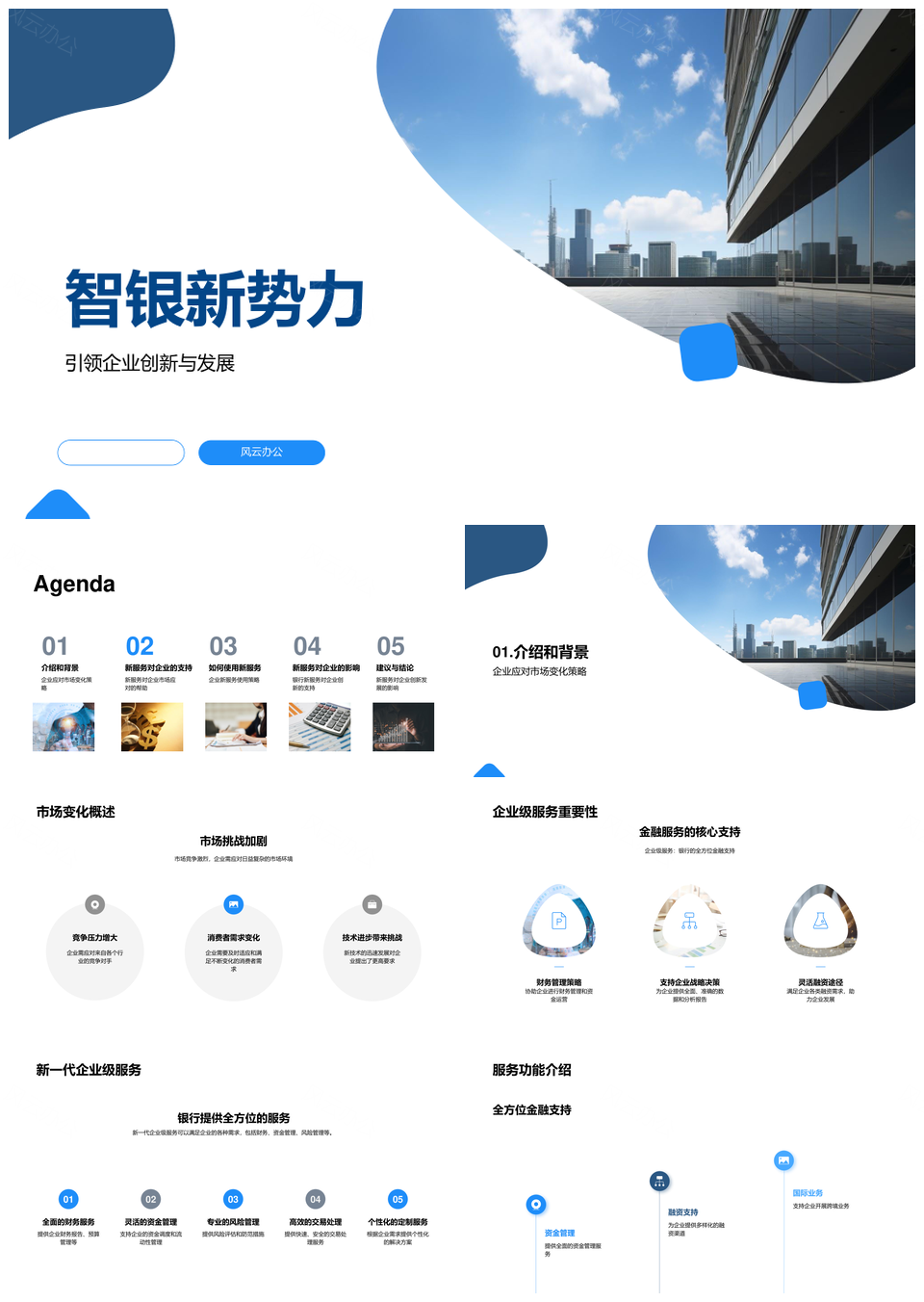 风云办公提供的智银新势力企服金融方案创新市场趋势PPT模板,下载格式为pptx,一共33页,作品中文字及图均可以修改和编辑,图片更改请在作品中右键图片并更换,文字修改请直接点击文字进行修改。