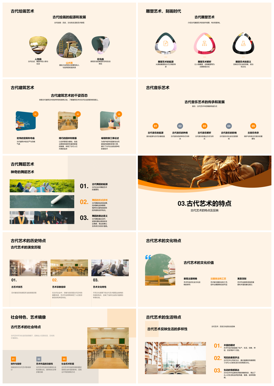 这是一张小学古代艺术教学课件探秘绘画雕塑建筑PPT模板,包含小学、古代艺术、教学课件、探秘、绘画、雕塑、建筑等主题内容,也可用作小学古代艺术教学课件、古代艺术教学课件探秘、艺术教学课件探秘绘画、教学课件探秘绘画雕塑、课件探秘绘画雕塑建筑、小学古代艺术教学、古代艺术教学课件、艺术教学课件探秘、教学课件探秘绘画、课件探秘绘画雕塑、探秘绘画雕塑建筑、小学古代艺术、古代艺术教学、艺术教学课件、教学课件探秘等PPT场景使用。 风云办公提供的小学古代艺术教学课件探秘绘画雕塑建筑PPT模板,下载格式为pptx,一共29页,作品中文字及图均可以修改和编辑,图片更改请在作品中右键图片并更换,文字修改请直接点击文字进行修改。