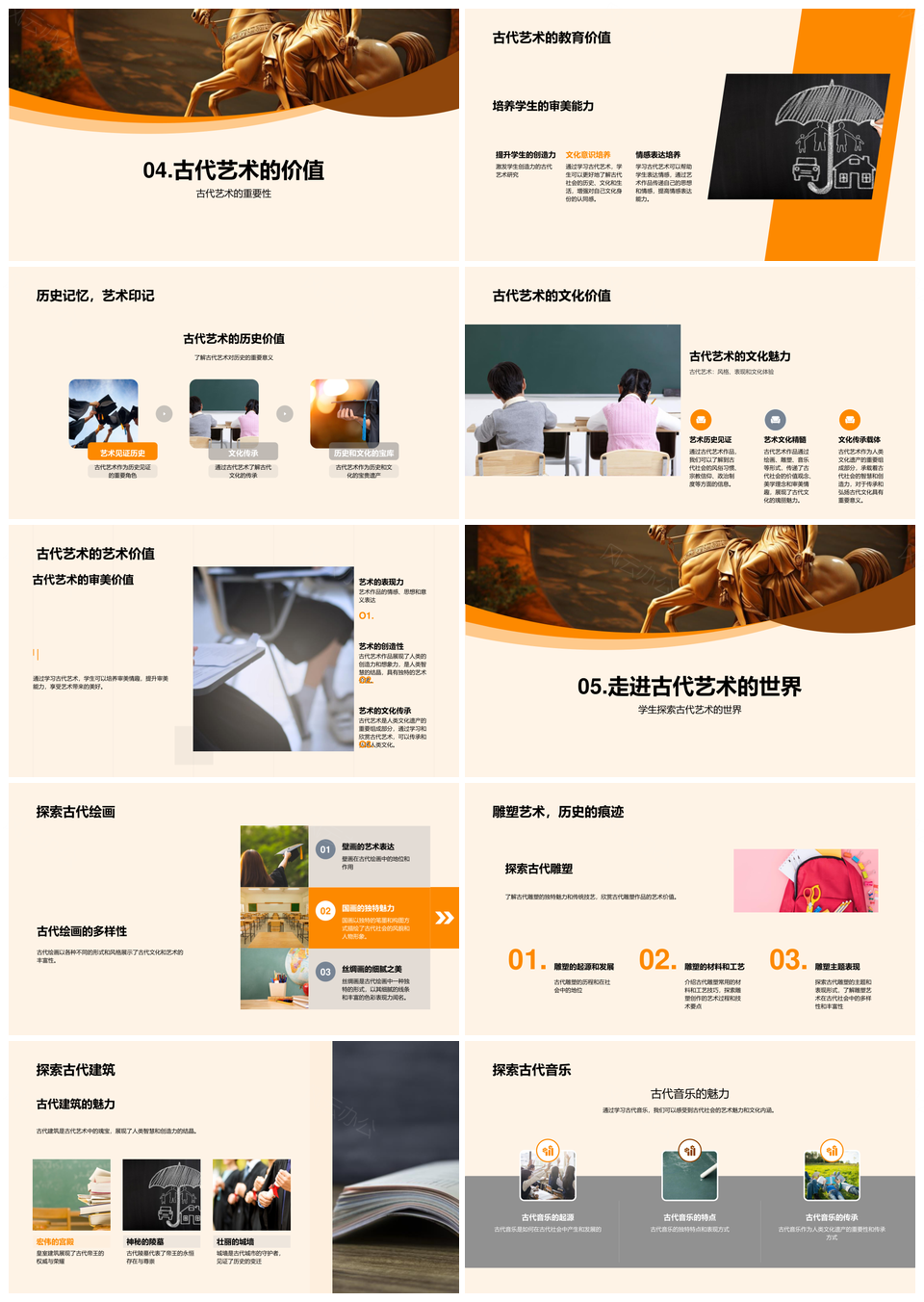 小学古代艺术教学课件探秘绘画雕塑建筑PPT模板推荐
