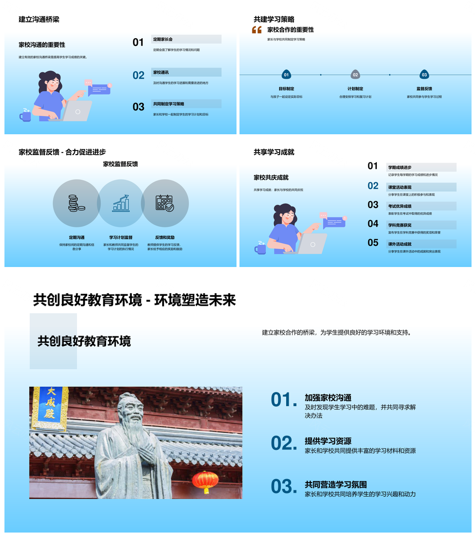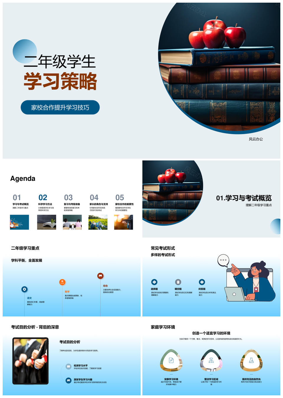 风云办公提供的二年级家校合作学习技巧备考习惯PPT模板,下载格式为pptx,一共33页,作品中文字及图均可以修改和编辑,图片更改请在作品中右键图片并更换,文字修改请直接点击文字进行修改。