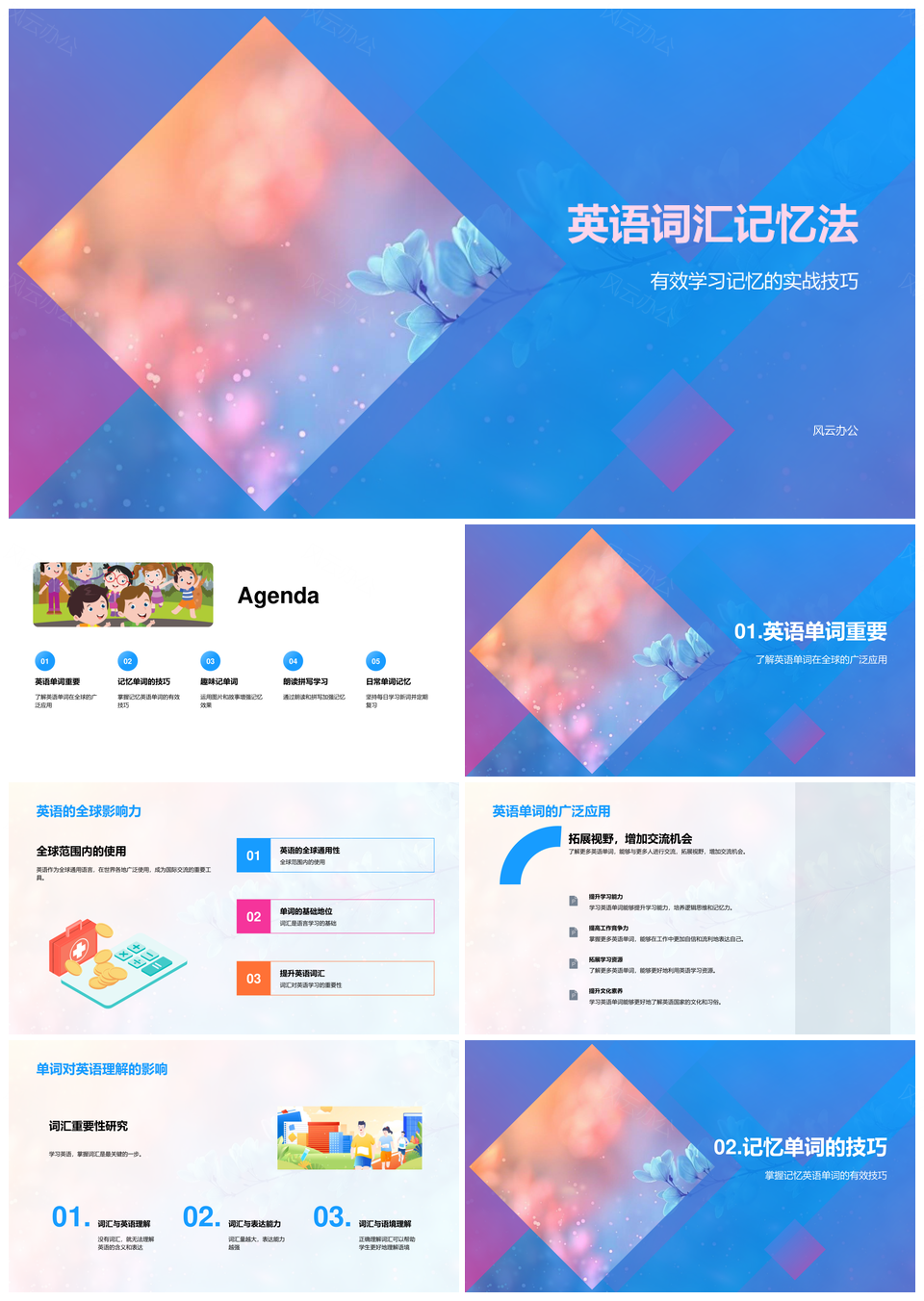 2025全球化英语词汇记忆策略联想法卡片视听学习PPT模板