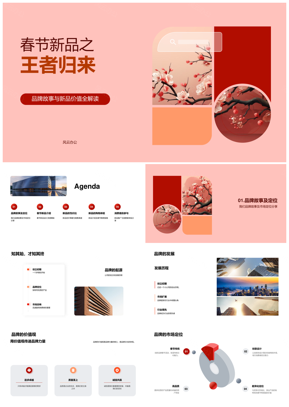 春节灯笼新品品牌故事核心理念差异化设计PPT模板推荐