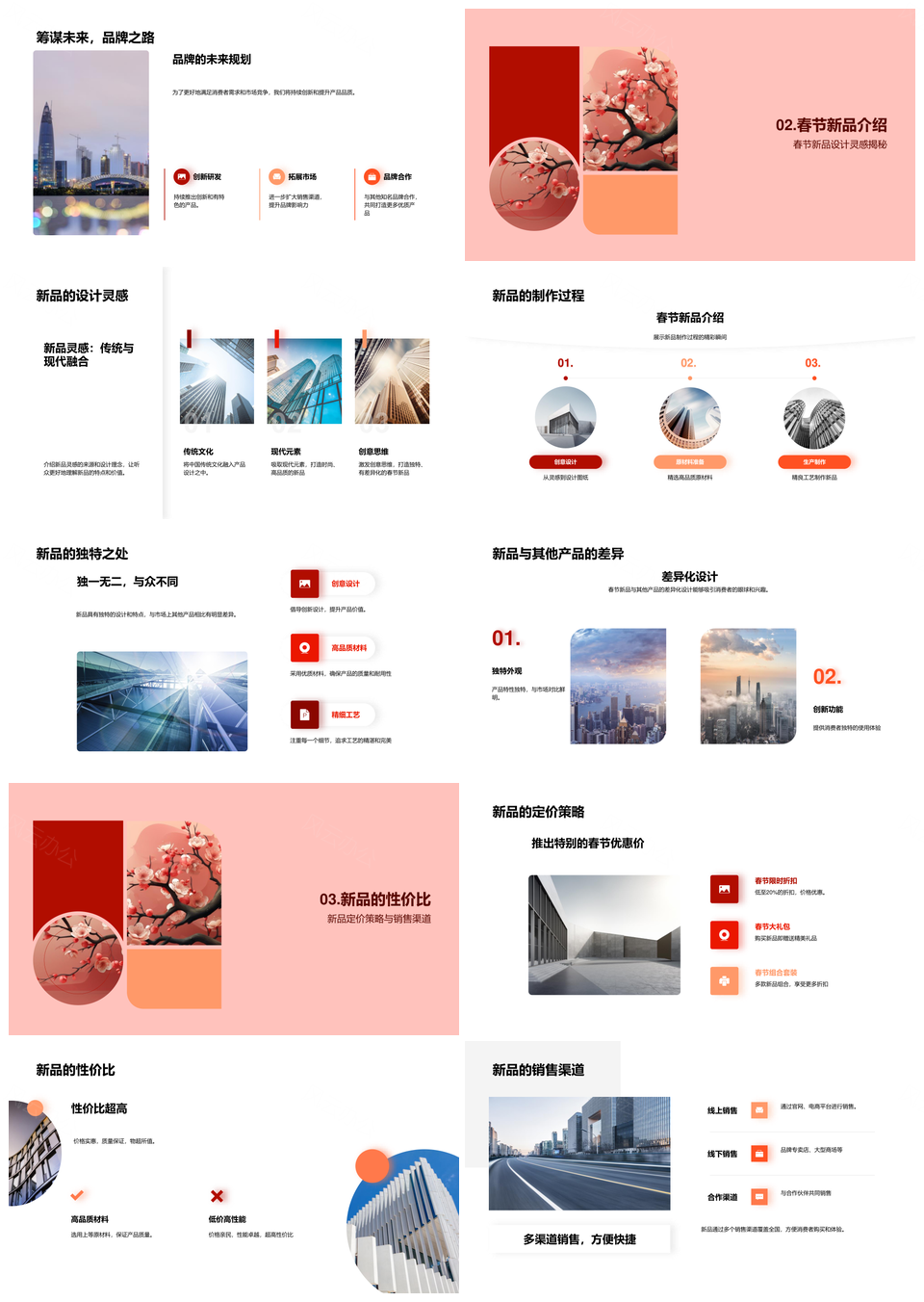 时尚品牌春节新品樱树元素材质款型设计PPT模板