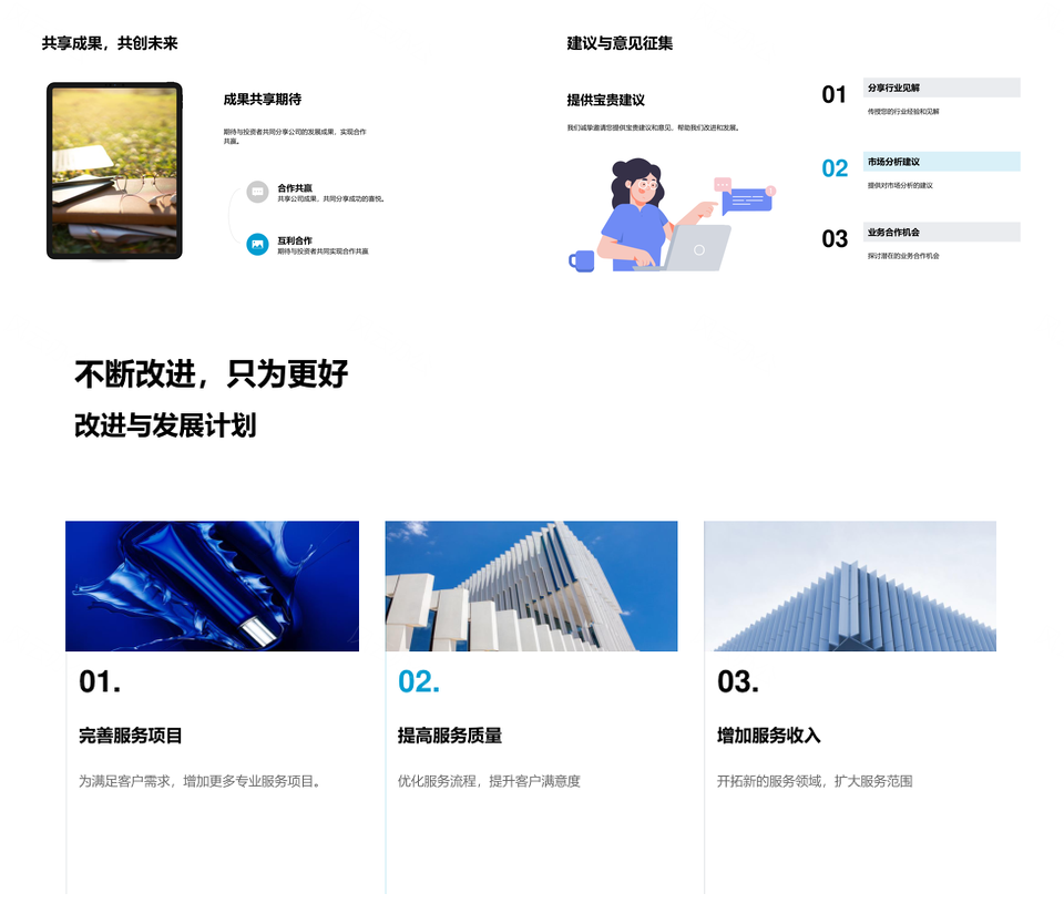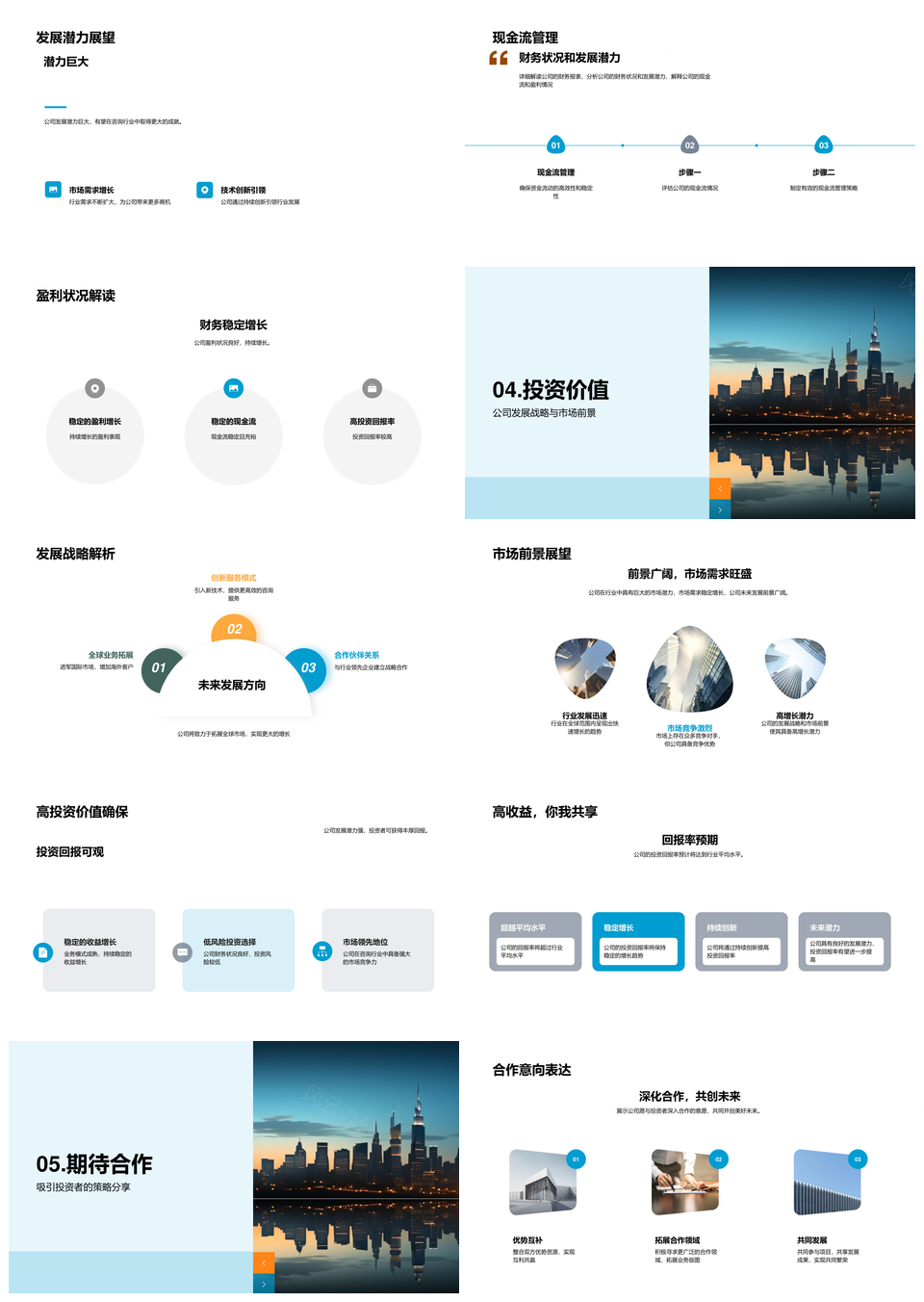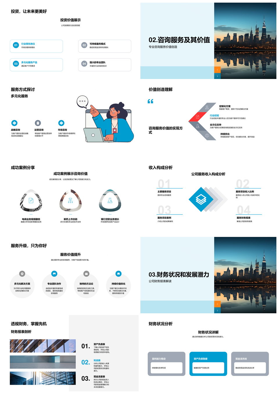 这是一张智慧投资共享成长解析公司价值发展业务PPT模板,包含智慧、投资、共享、成长、解析、公司、价值、发展、业务等主题内容,也可用作智慧投资共享成长、投资共享成长解析、共享成长解析公司、成长解析公司价值、解析公司价值发展、公司价值发展业务、智慧投资共享、投资共享成长、共享成长解析、成长解析公司、解析公司价值、公司价值发展、价值发展业务、智慧投资、投资共享等PPT场景使用。 风云办公提供的智慧投资共享成长解析公司价值发展业务PPT模板,下载格式为pptx,一共31页,作品中文字及图均可以修改和编辑,图片更改请在作品中右键图片并更换,文字修改请直接点击文字进行修改。