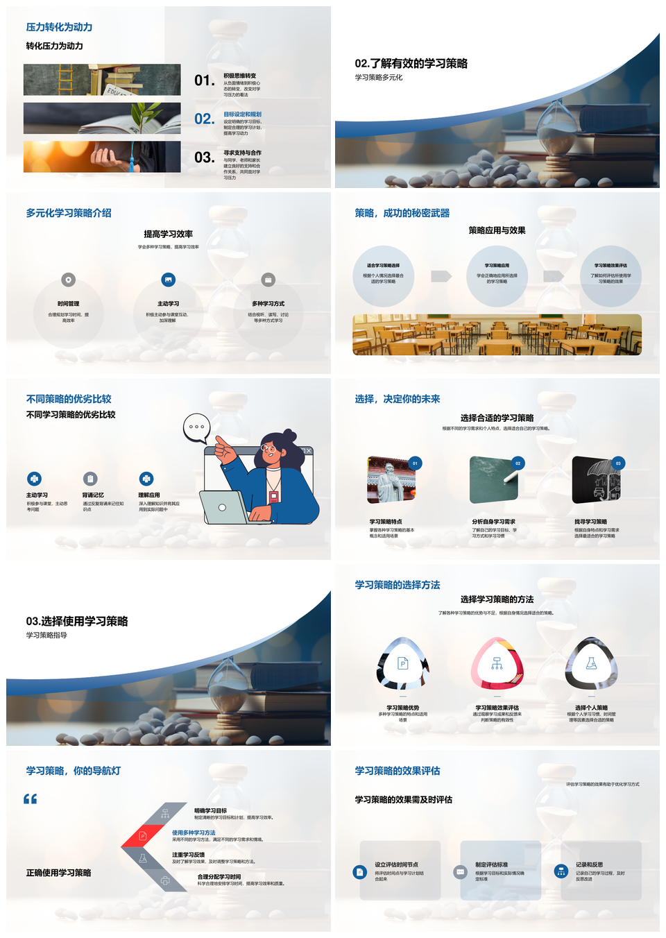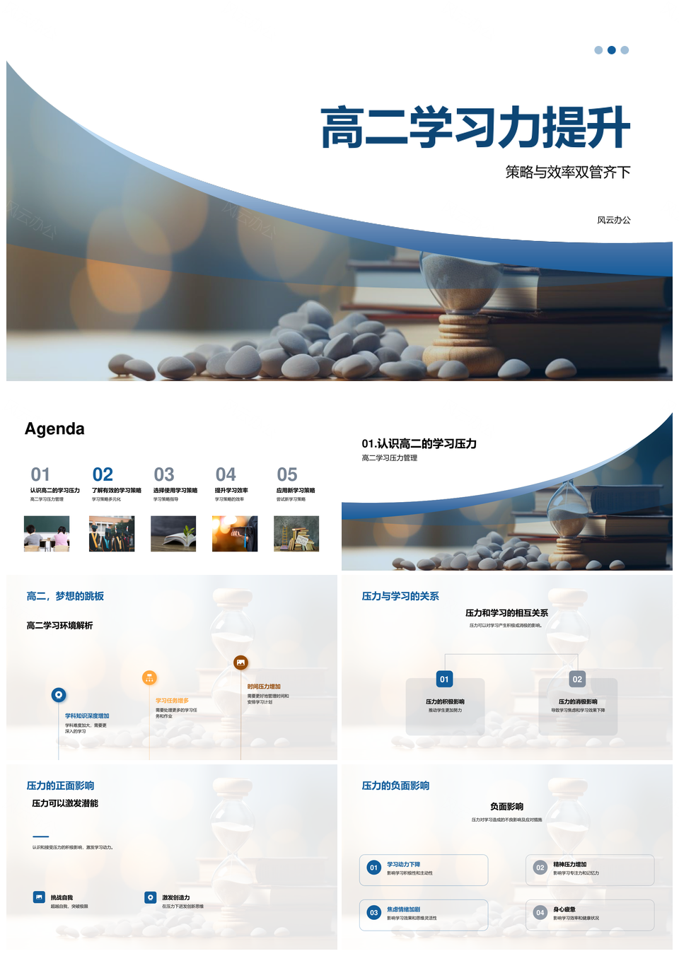 风云办公提供的高二高效策略提升学习力书海减压PPT模板,下载格式为pptx,一共27页,作品中文字及图均可以修改和编辑,图片更改请在作品中右键图片并更换,文字修改请直接点击文字进行修改。