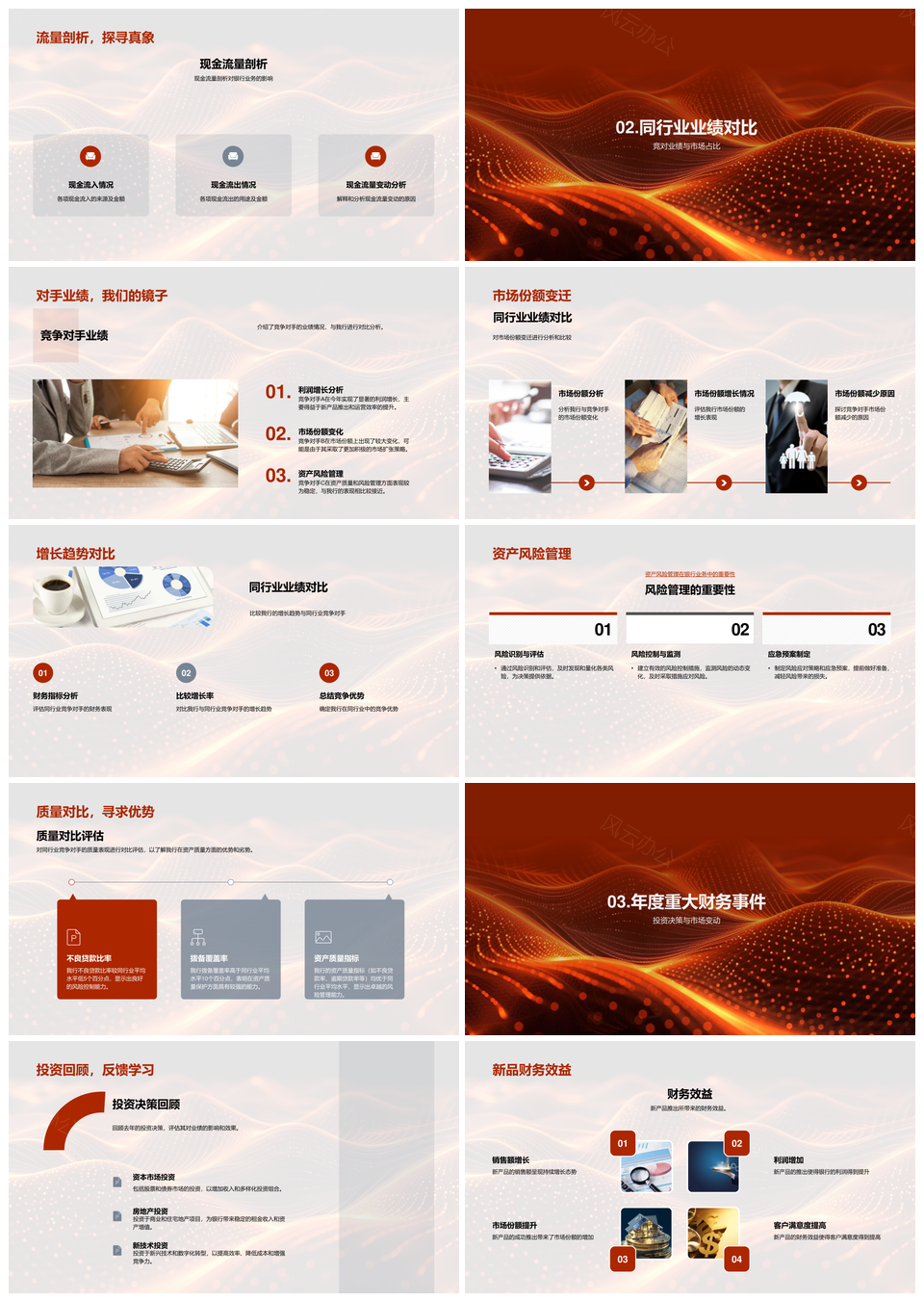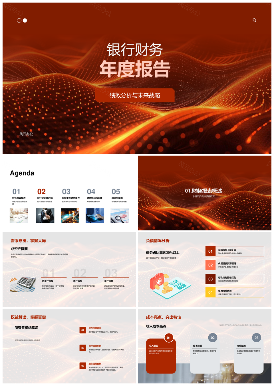 风云办公提供的银行年报财务绩效战略与报表分析PPT模板,下载格式为pptx,一共33页,作品中文字及图均可以修改和编辑,图片更改请在作品中右键图片并更换,文字修改请直接点击文字进行修改。