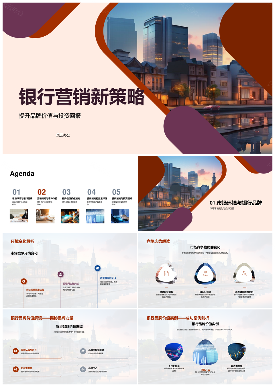 风云办公提供的银行品牌价值与市场份额双升营销策略PPT模板,下载格式为pptx,一共28页,作品中文字及图均可以修改和编辑,图片更改请在作品中右键图片并更换,文字修改请直接点击文字进行修改。