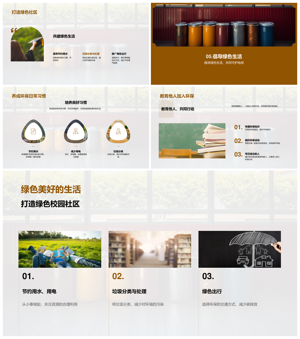 绿色生活美好校园践行环保节约分类PPT模板