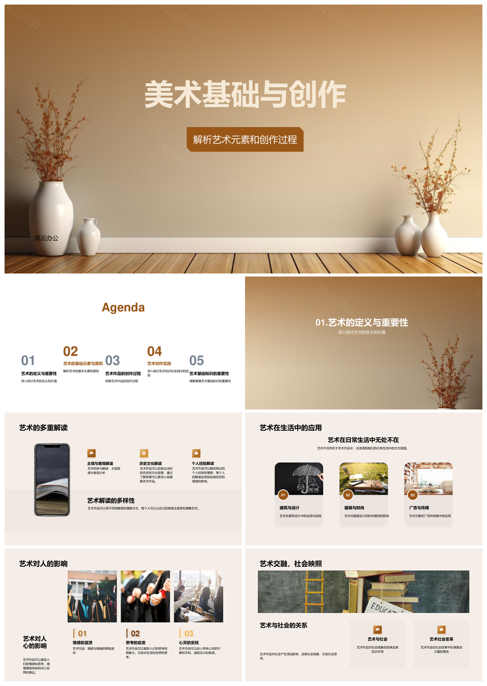 美术基础创作元素步骤原则影响画笔定义PPT模板推荐