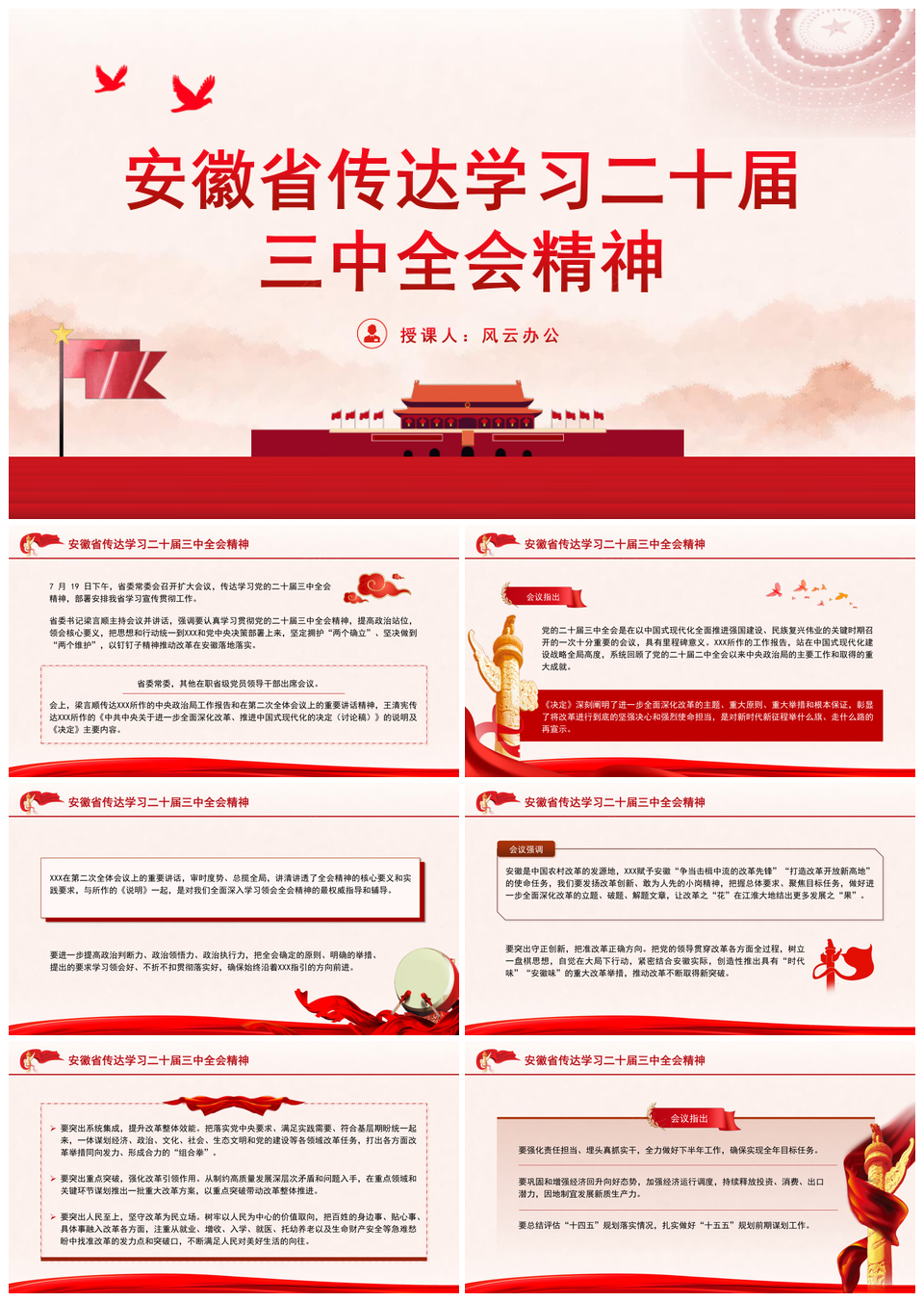 安徽省传达学习二十届三中全会精神专题党课PPT模板推荐