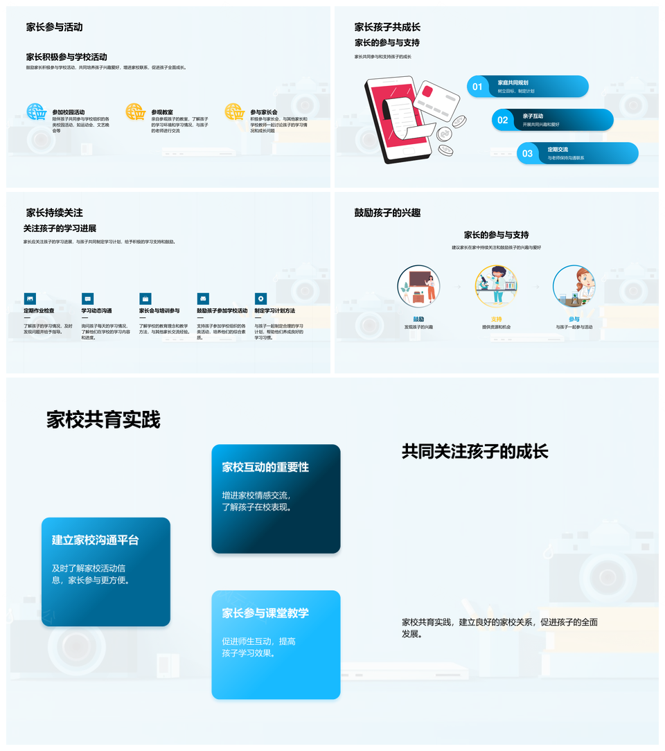 学生成长家校共育全面发展活动成果全记录PPT模板推荐