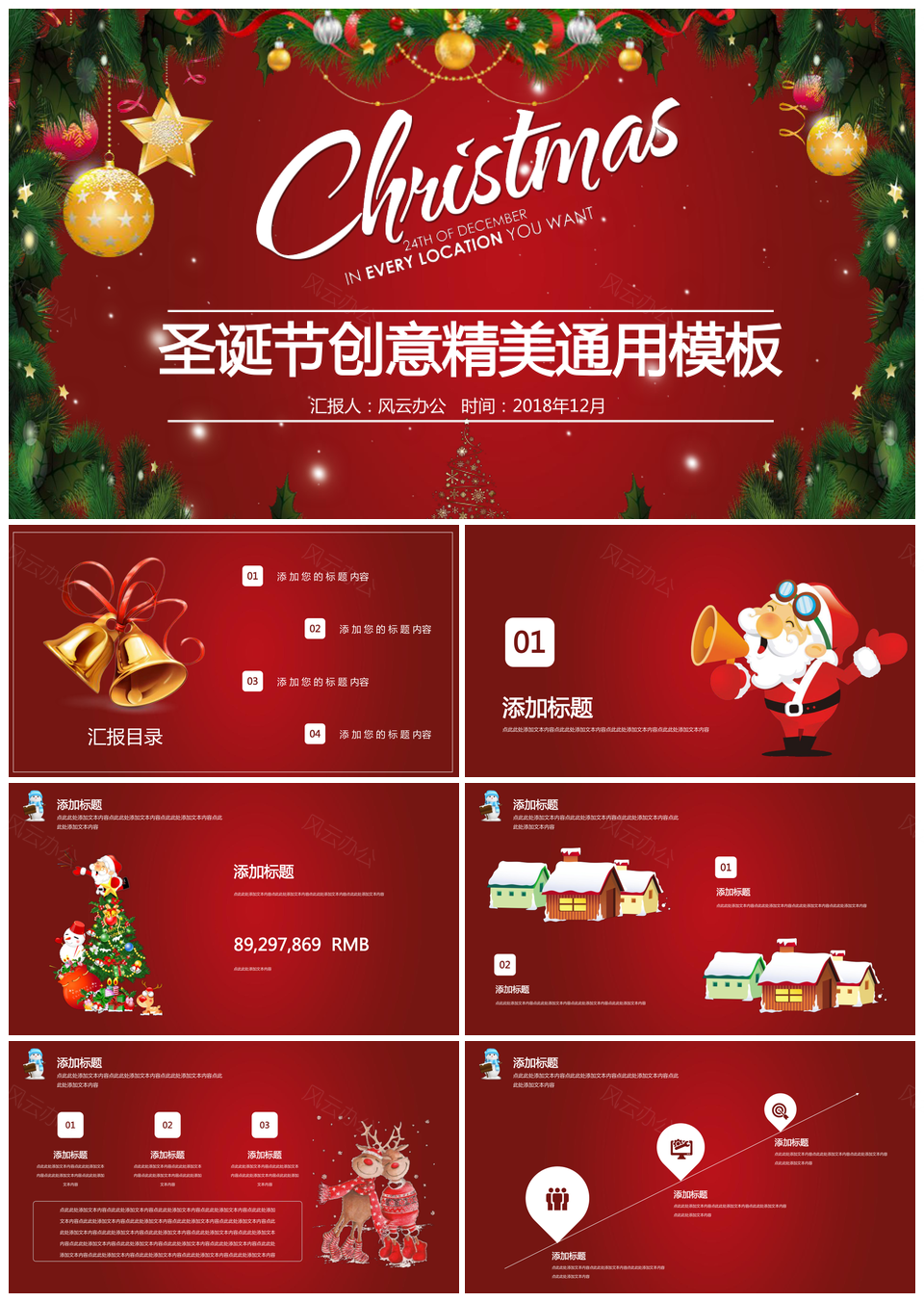 风云办公提供的圣诞节创意精美通用ppt模板通用PPT模板,下载格式为pptx,一共22页,作品中文字及图均可以修改和编辑,图片更改请在作品中右键图片并更换,文字修改请直接点击文字进行修改。