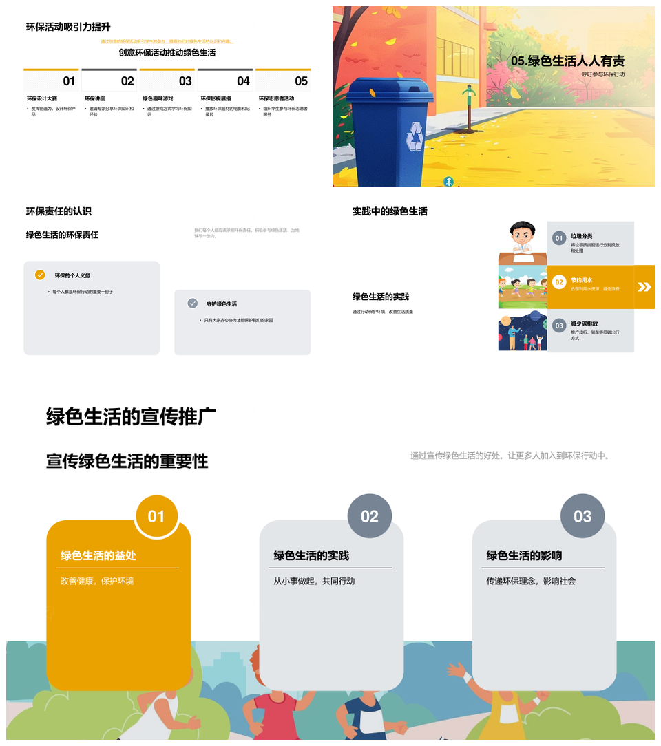 2025校园环保行动实践绿色生活分类节水低碳全球PPT模板推荐