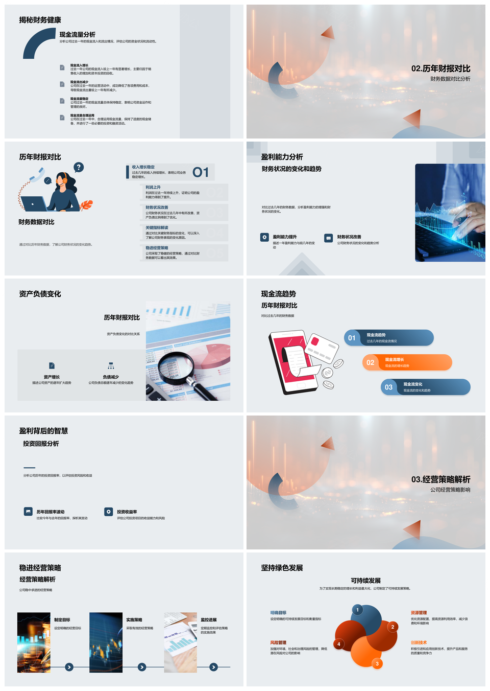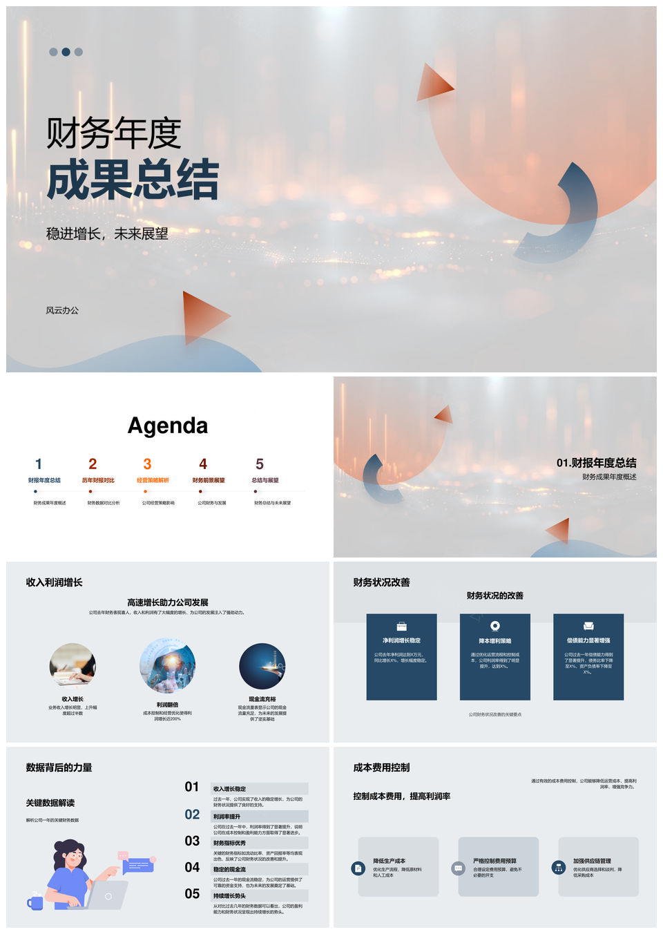 风云办公提供的财务年度稳增成果总结策略数据展望PPT模板,下载格式为pptx,一共33页,作品中文字及图均可以修改和编辑,图片更改请在作品中右键图片并更换,文字修改请直接点击文字进行修改。